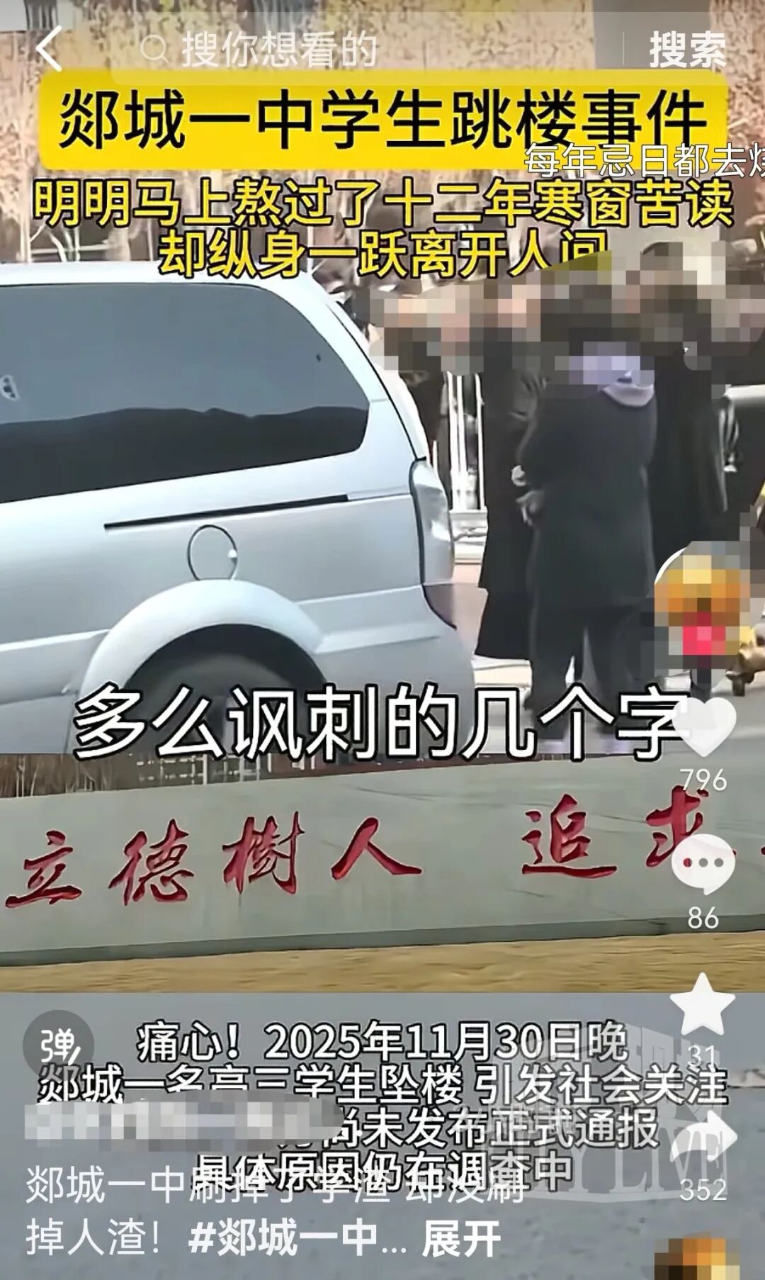 今天早上,有多位网友在社交平台发布视频,称山东省临沂市郯城第一中学一高中生坠楼身亡,引发网友关注。