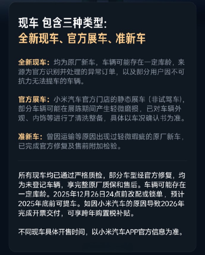 小米有官方现车了 下订了就能马上开走!这些车大多是别人下单后又不要的,还有展车、