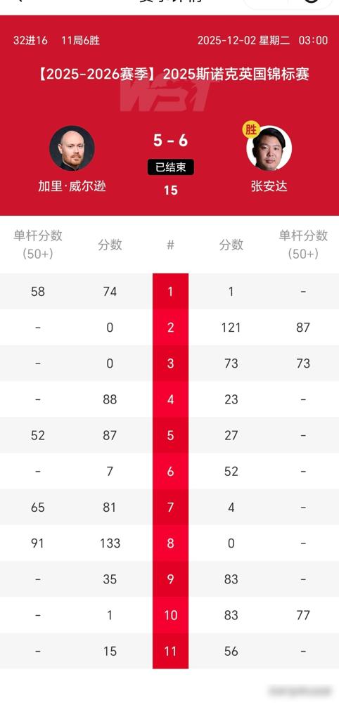 【张安达绝地求生,有望重返前16】 世锦赛第一轮张安达对阵出租车加里.威尔逊。张安达在3-5落后的绝境下,发起了疯狂的反扑,连追两局,比分来到5-5。 这比赛看得人手心冒汗。张安达真是把韧性打出来了。尤其是决胜局那种磨功,不仅拖垮了对手,更展现了中国斯诺克球员的另一种可能性。 加里·威尔逊可不是软柿子。“出租车司机”这个外号背后,是他多年在职业赛场的稳扎稳打。张安达能把他磨到没脾气,靠的不是运气。那65分钟的决胜局,每一个球都在考验耐心。威尔逊脸都憋红了,就是找不到突破口。这种赢法,比一杆清台更让人佩服。 张安达现在排名35位,离前16看似不远,实则隔着千山万水。英锦赛冠军哪有那么好拿?但话说回来,去年这个时候,谁敢想他能把TOP16的选手逼到这种地步?斯诺克这几年,中国球员缺的就是这种死磕到底的劲头。丁俊晖之后,太久没见到这种能打硬仗的了。 这场胜利的意义,远不止一场晋级。它给中游排名的球员打了个样。技术可以练,准度可以提升,但关键时刻敢不敢磨、能不能扛,才是分水岭。张安达这次就是把“不可能”磨成了“可能”。威尔逊的节奏完全被带乱了,这是战术上的胜利。 看看现在的斯诺克球坛,奥沙利文那种行云流水是天分,但更多比赛赢在耐心。塞尔比当年靠磨功拿下世锦赛,现在张安达也在证明这条路走得通。对中国球员来说,这或许比追求炫酷的进攻更实际。毕竟不是每个人都是天才,但每个人都可以选择不放弃。 重返前16是个现实目标,但更可贵的是这种比赛气质。技术统计再漂亮,不如关键时刻能顶住。张安达让球迷看到,中国斯诺克不只有丁俊晖,还有一批能打硬仗的球员在默默成长。 这场比赛值得所有运动员看看。什么叫绝境求生?不是每次都要惊天逆转,而是在相持中比对手多坚持一秒钟。张安达赢下的不只是比赛,是一种信念。这种信念,比任何排名都重要。 冬日生活打卡季