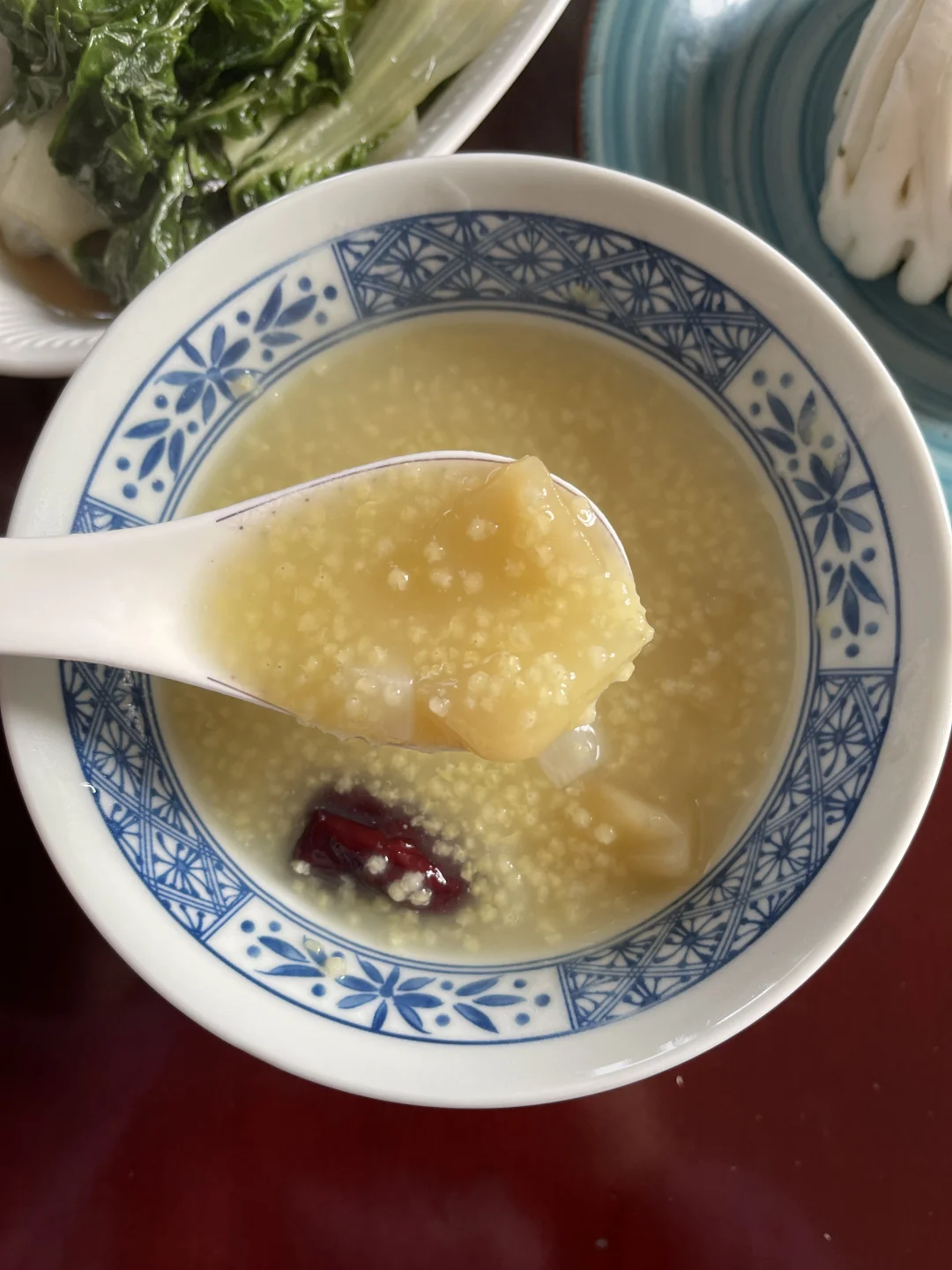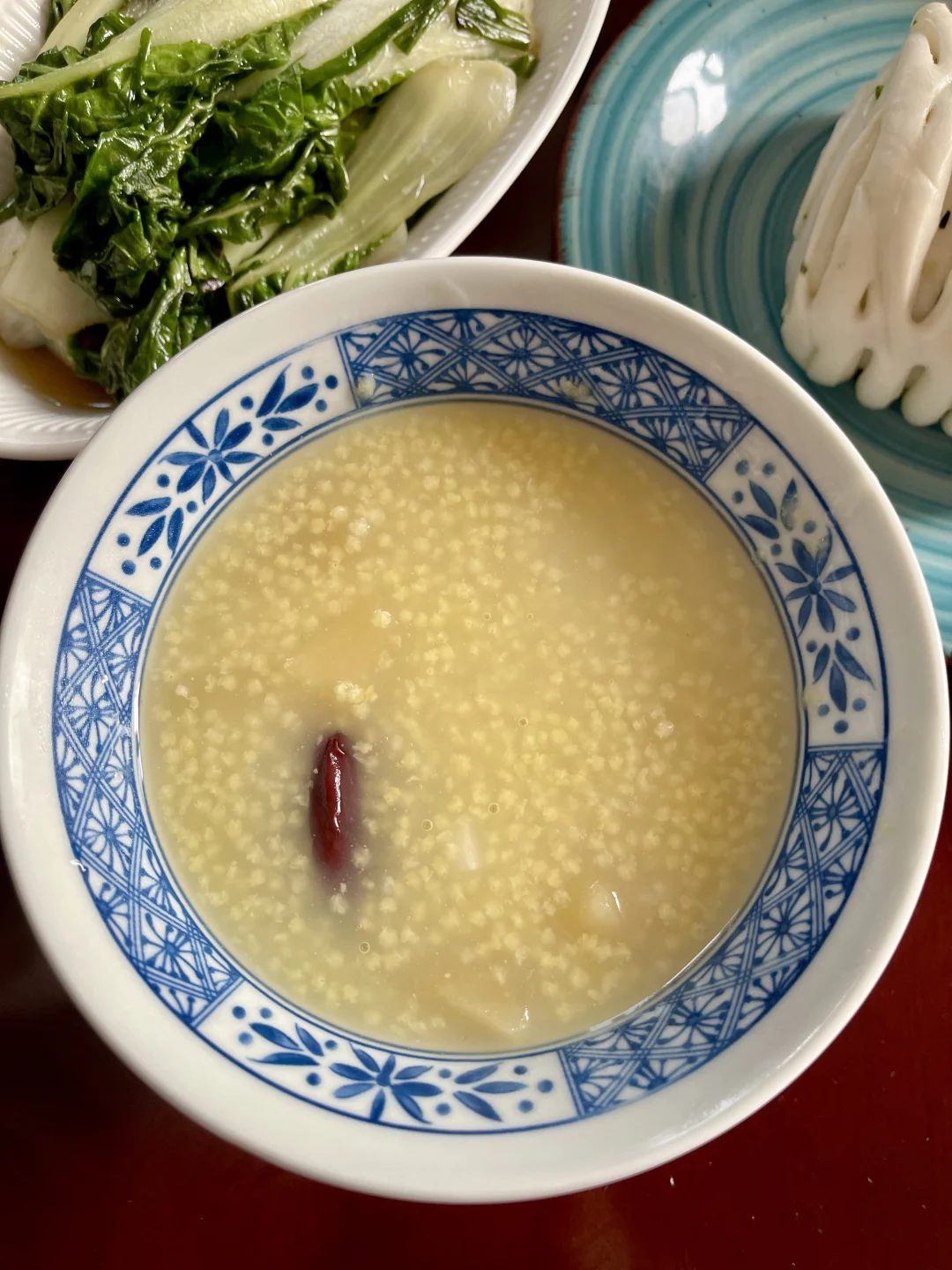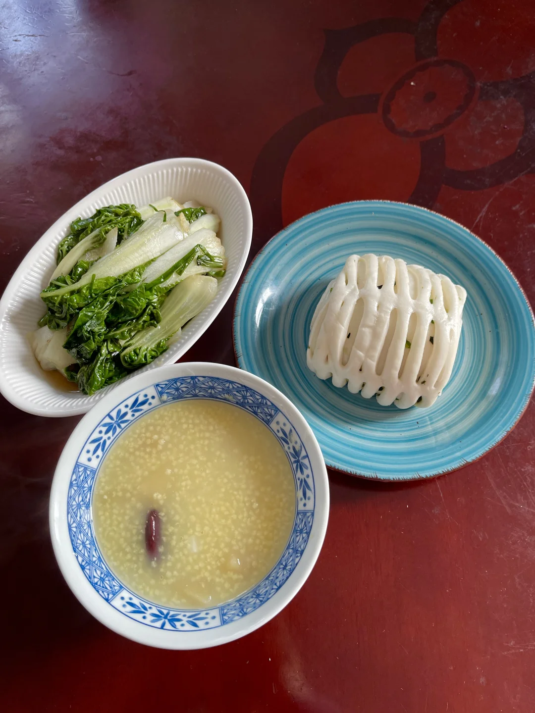 嗨👋互联网闺蜜们 我是热爱食养文化的樂妈👩 自学《黄帝内经》 挑战和宝宝一起中医食养好月卑胃100天打卡✅ 养胃早餐:苹果山药小米粥➕奶油小青菜➕葱卷 营养:维生素C2片 今日状态✅ 🟢胃:正常 🟡脾:调理中 饮食干净了,脾胃好舒服[害羞R] 快过年了姐妹们,胃炎好些没?