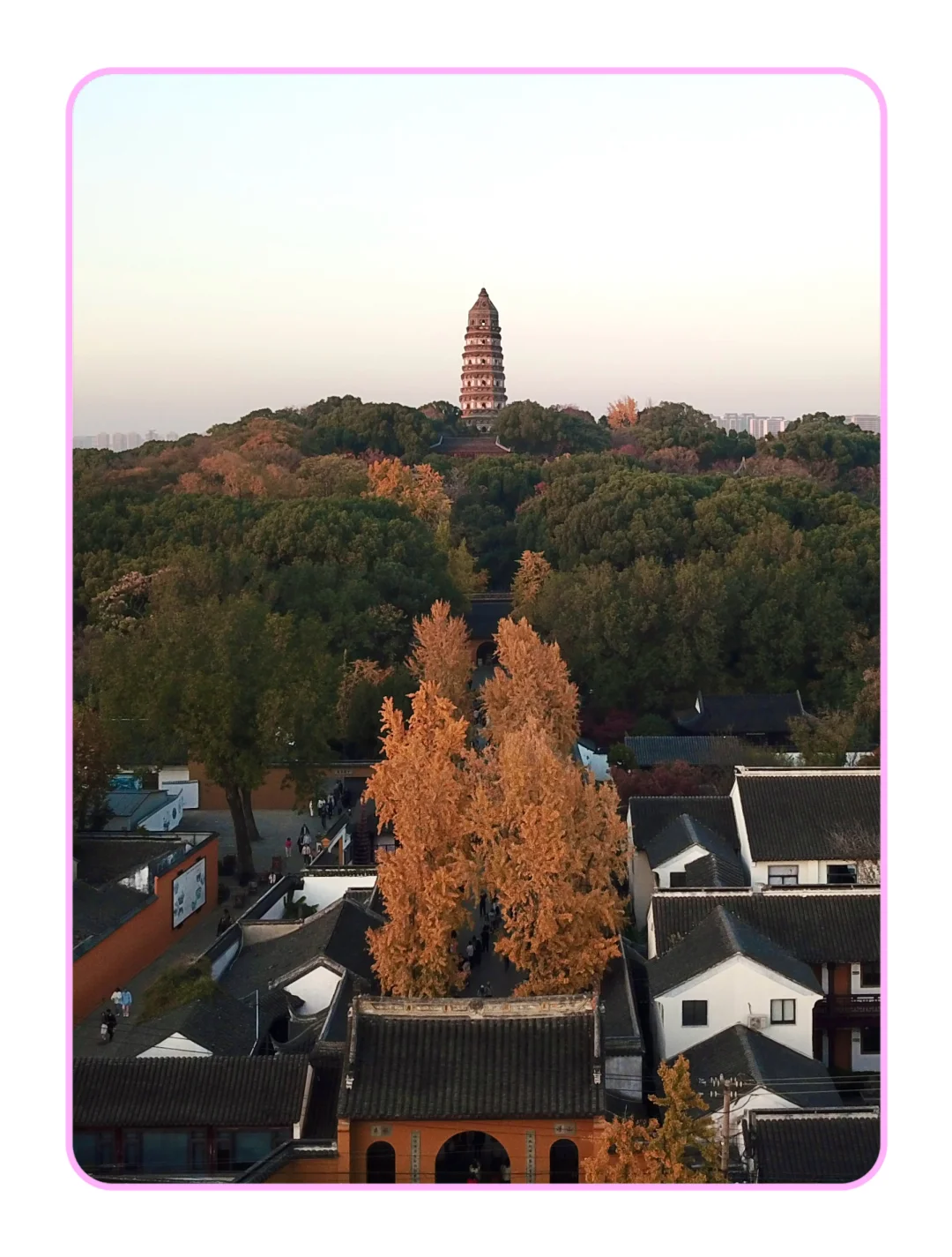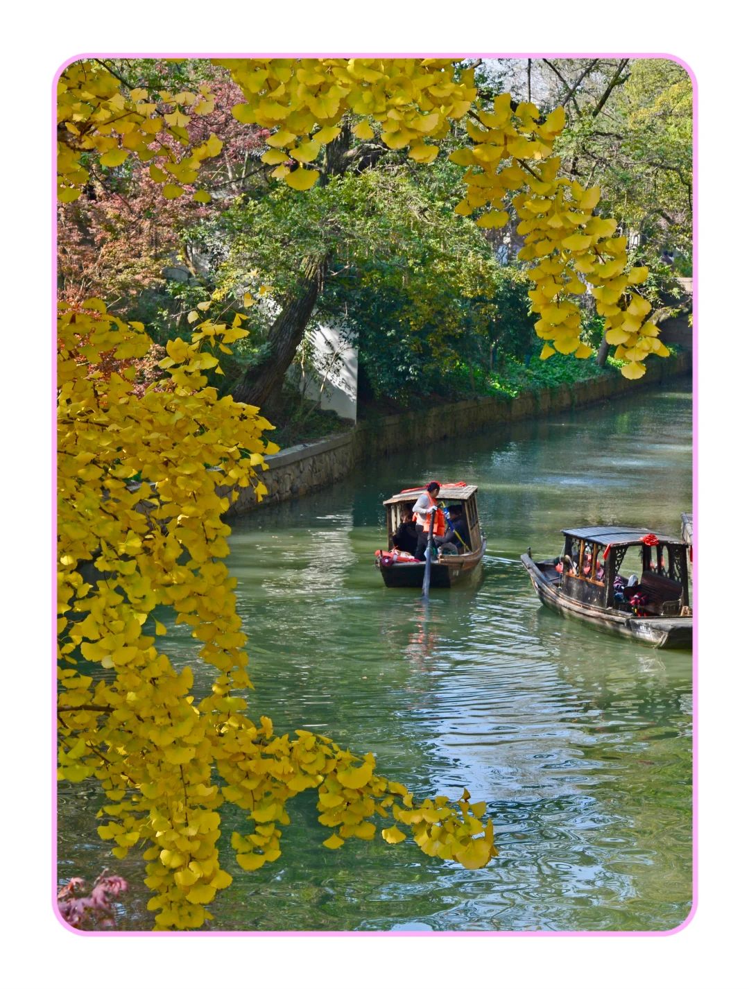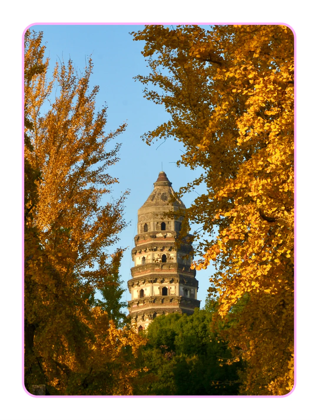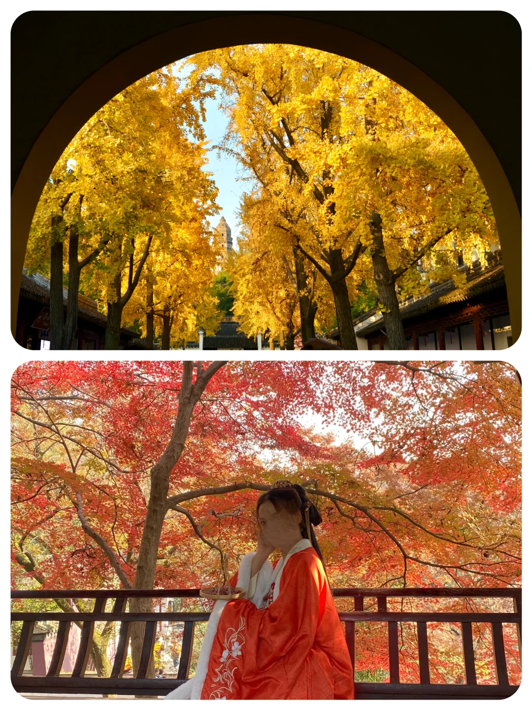 ▫️银杏的黄、红枫的橙、乌桕的紫、黄连木的绯、榉树的褐,交织成虎丘最绚烂的秋