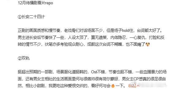长安二十四计双轨repo成毅《长安二十四计》演技台词获赞、人设亮眼,虞书欣何与《双轨》CP 感爆棚,爱恨交织剧情口碑绝佳。