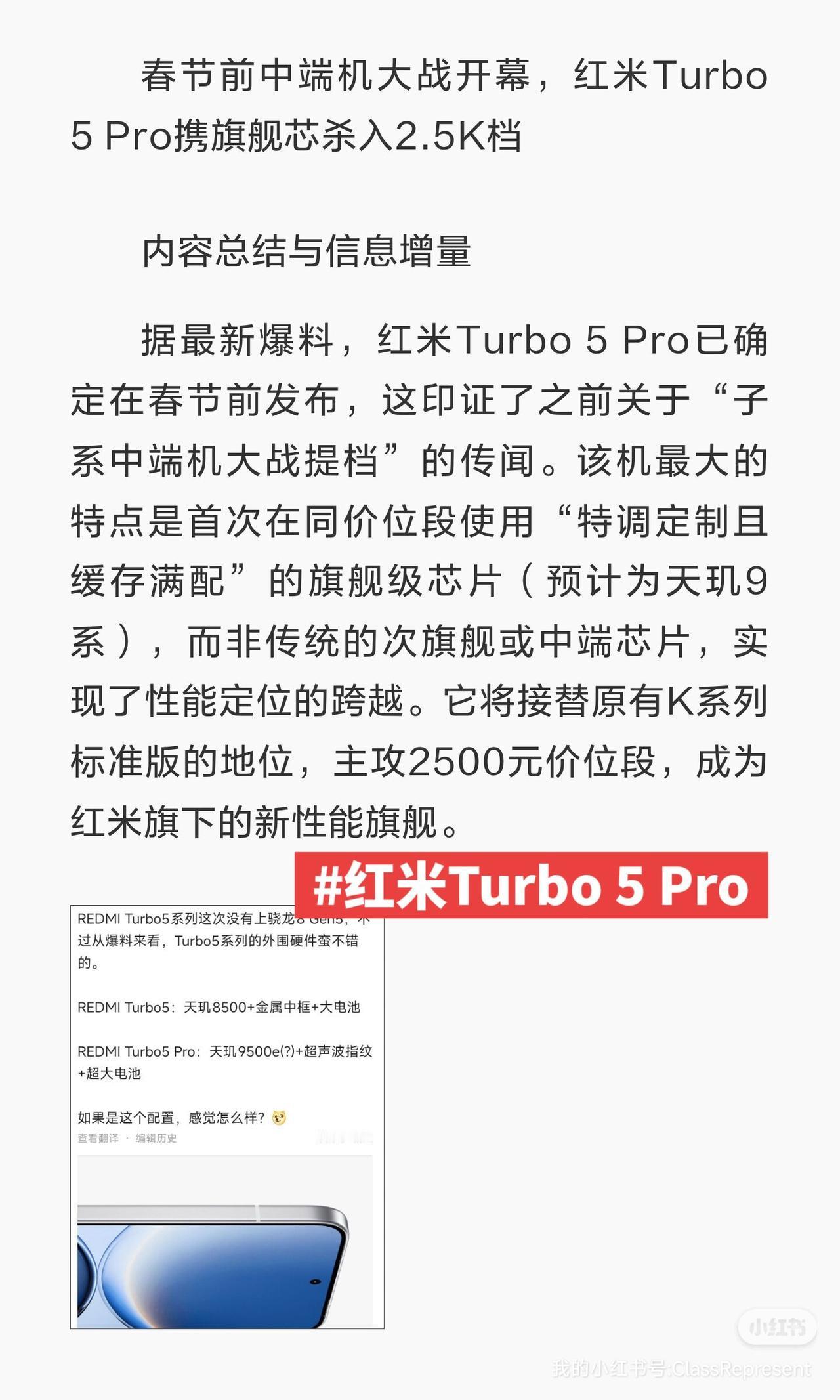 春节前中端机大战开幕,红米Turbo 5 Pro携旗舰芯杀入2.5K档