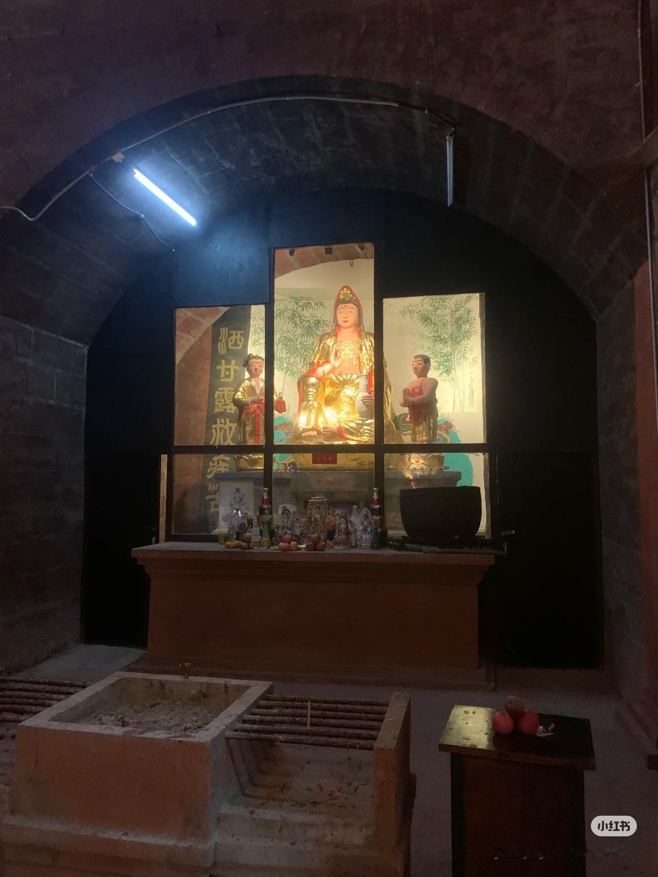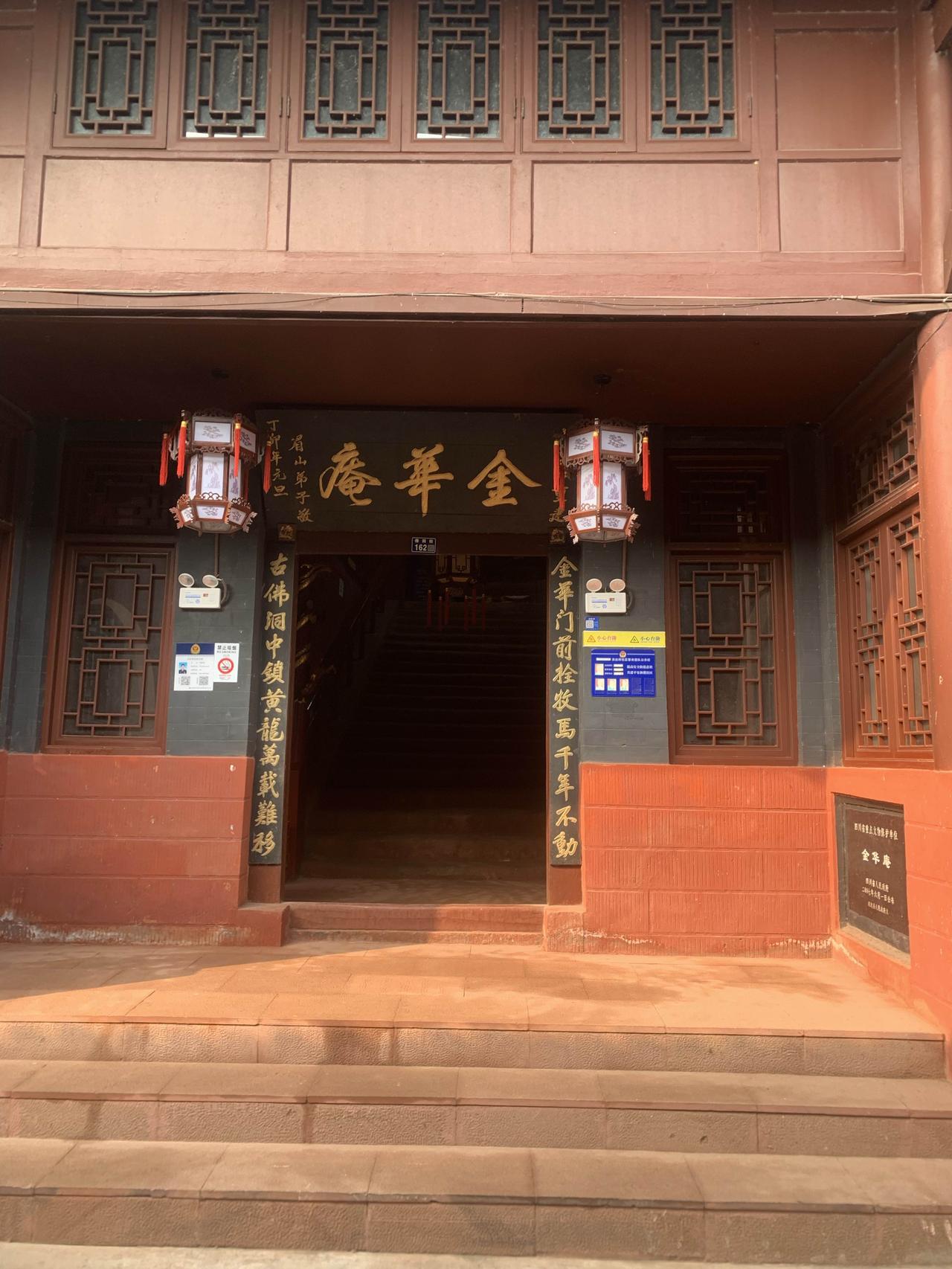 金华庵位于成都市双流区古佛洞街道的沿河老街的中部,始建于北宋乾德元年(963年),后毁于明末战乱,现存建筑为清乾隆四十六年至五十四年(1781-1789年)重建,该庵依山而建,坐东向西,总建筑面积约2400平方米,采用五重檐硬山式木结构,保存有山门、前殿、观音殿、大佛殿等建筑单元。 1984年被列为成都市文物保护单位,2006年升格为四川省第七批省级文物保护单位。 庵里只有一个工作人员在管理,沿着石阶向前上,府江两岸尽收眼底,沿着石阶向下可以进入“古佛洞”我向下钻了两层,就不敢下去了。可能这个洞就是传说中的古佛洞吧,也就是这个古镇的名字的由来⋯