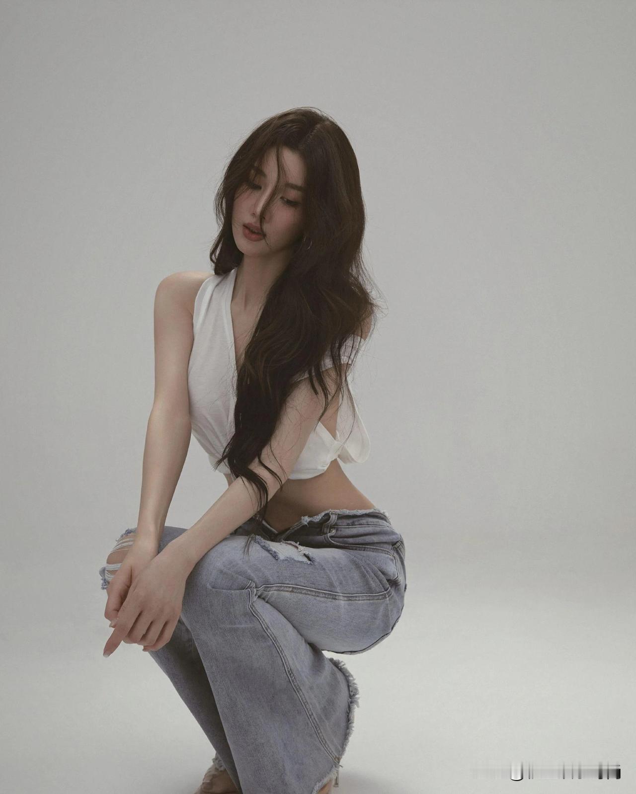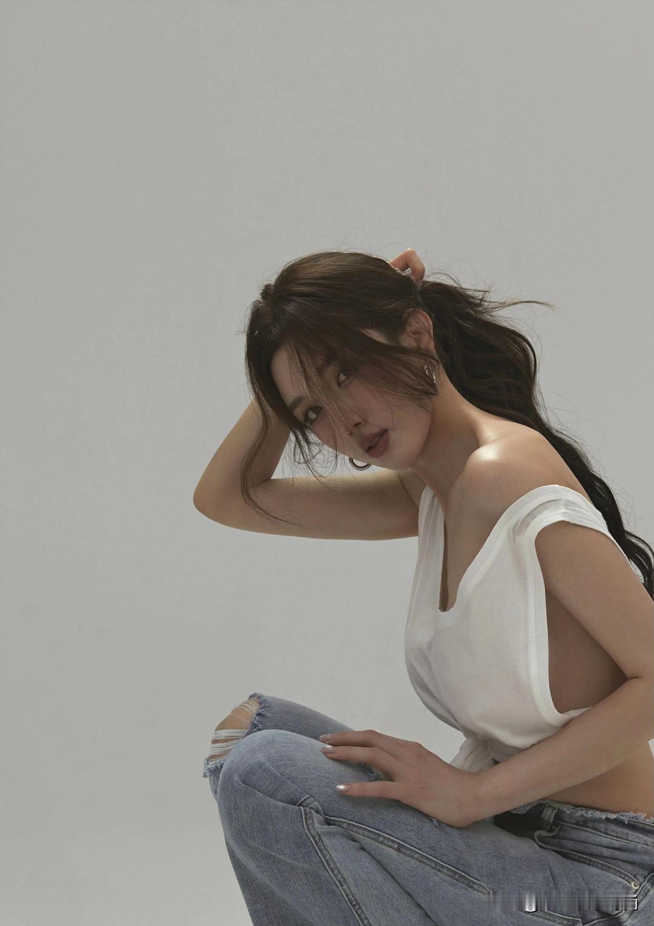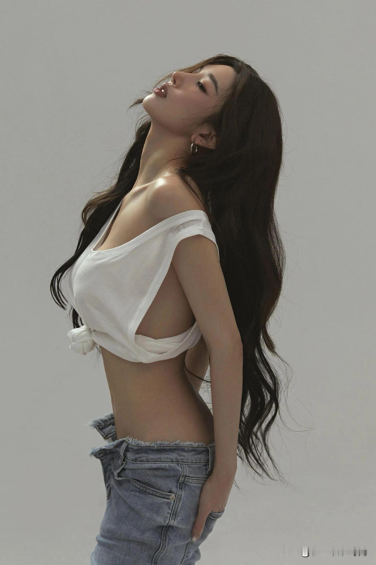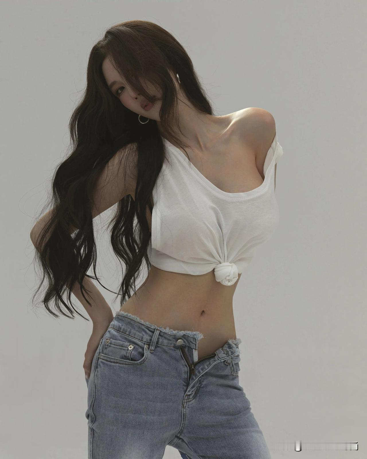 这组穿搭精妙地将简约与个性融为一体,彰显出十足的时尚魅力。上衣是一件白色露肩短款T恤,独特的露肩设计与背后的镂空剪裁相得益彰,既勾勒出精致的肩颈线条,又不经意间流露出一丝小性感。短款版型巧妙地凸显出纤细腰肢,增添了几分俏皮活泼。 下装搭配一条浅蓝色毛边阔腿牛仔裤,宽松的裤型加上裤脚的毛边设计,复古又随性,恰到好处地中和了上衣的修身感,营造出一种慵懒自在的氛围。 鞋子选了一双透明细跟高跟鞋,透明材质轻盈又精致,细跟设计提升了整体气场。它与牛仔裤搭配在一起,碰撞出混搭的时尚火花,让整个造型在休闲中不失精致优雅,能轻松适配多种场合。无论是日常出门逛街,还是约会聚会,都能展现出独特的时尚态度。