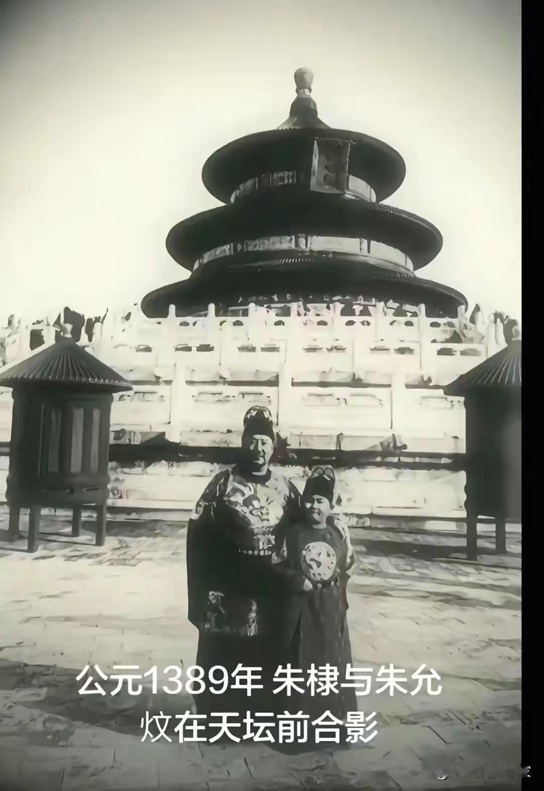 二位看镜头!笑一个! 朱允炆扒着朱棣胳膊晃:叔你别板着脸嘛!皇爷爷说合照要喜庆! 朱棣嘴角扯出半寸弧度,手悄悄抵在朱允炆后背:叔这是“稳重”。(心里默念:等你登基,看我怎么“稳”) “咔嚓”—— 照片定格:叔侄肩并肩笑得“一团和气”,天坛檐角的风好像都在替摄影师捏汗。朱棣