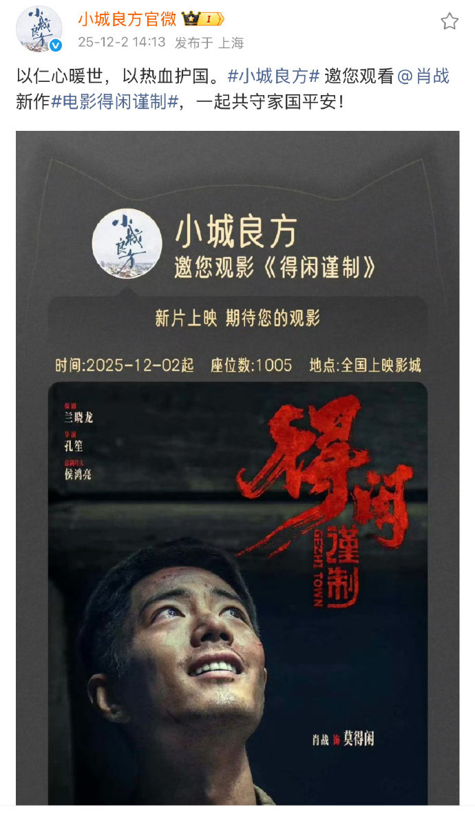 小城良方柠萌影视为肖战新电影包场 肖战剧方包场得闲谨制 肖战剧方包场得闲谨制,小