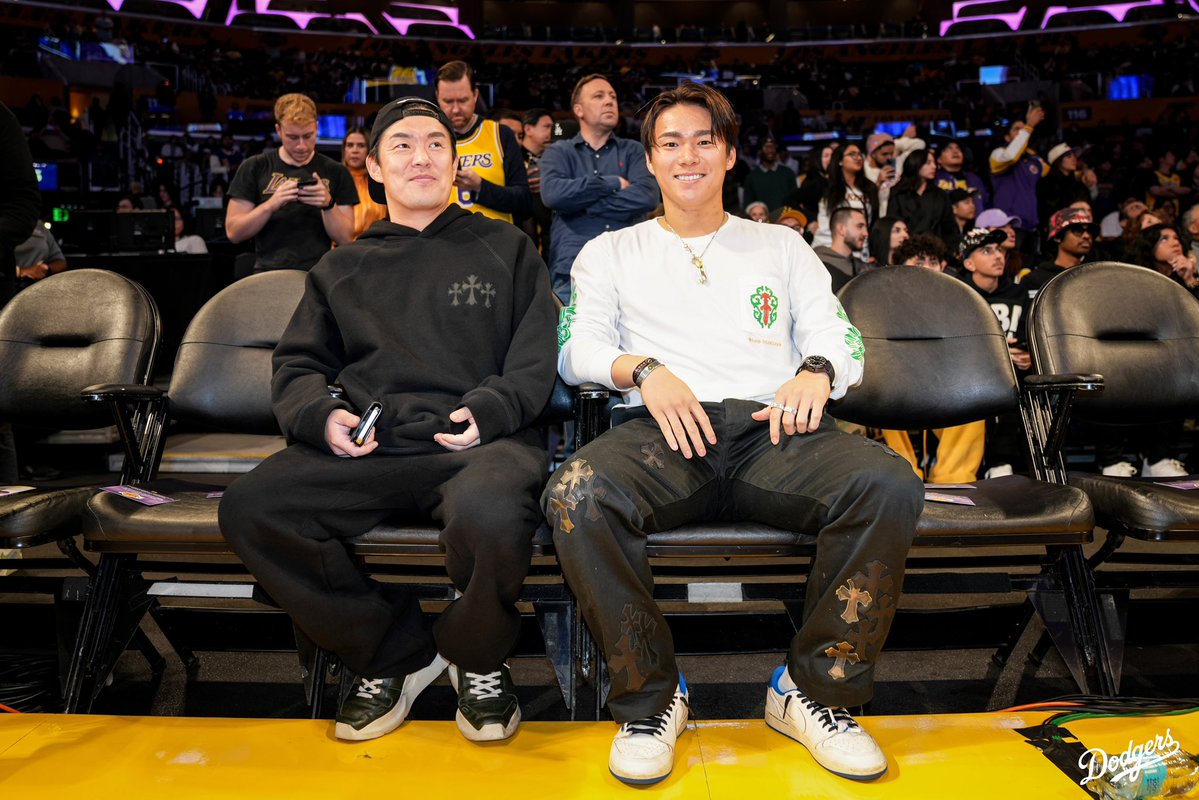 MLB洛杉矶道奇队投手、2025年世界大赛MVP山本由伸现场观战湖人比赛。