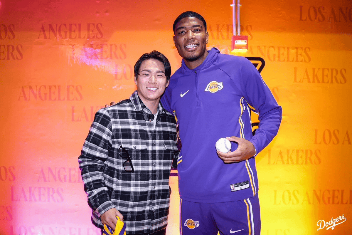 MLB:世界大赛MVP、洛杉矶道奇队投手山本由伸现身湖人主场