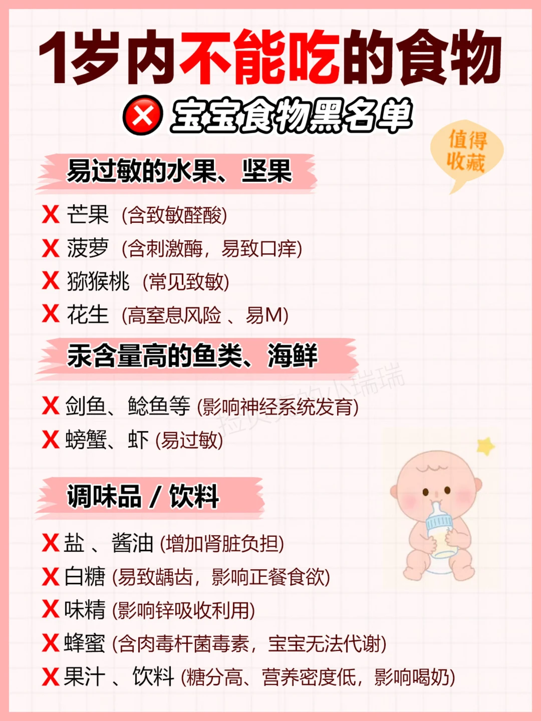 🚫 辅食搭配"黑名单" (1岁内尤其注意!):