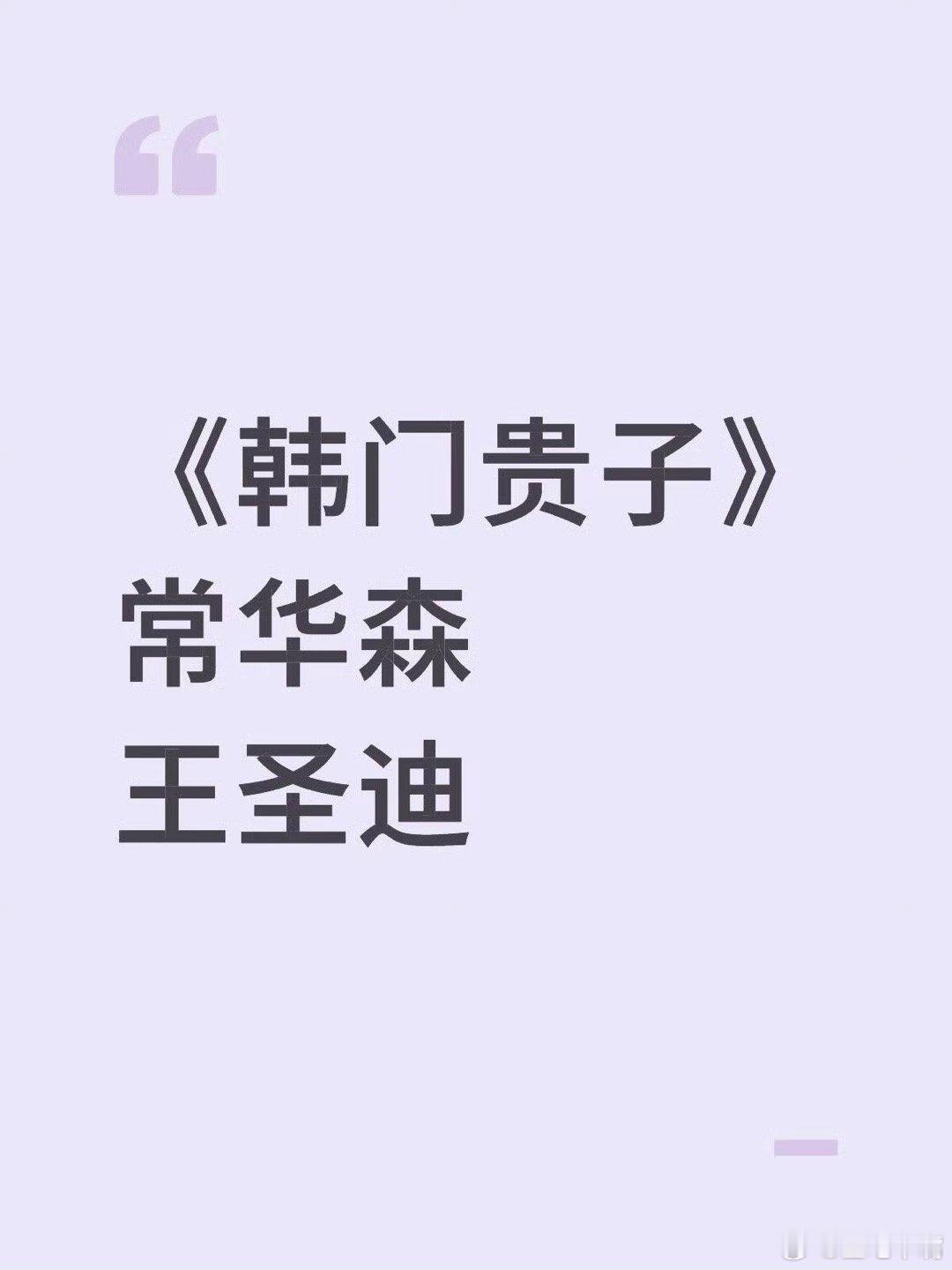 韩门贵子确定🍉古装📺电视剧《韩门贵子》预计明年年初开机,剧中男主常华森和加奈那是cp !领衔主演:常华森 王圣迪 加奈那 韩昊霖特邀出演:程潇 徐志胜(排名不分先后,按姓氏字母顺序排列)主演:张琛 蒯家乐 祁忆 蒲雨童等 特别主演:合诗雨特别邀请:付航 叶祖新 喻言特别出演:李晟 王成思 魏子昕 尹蕊 吴崇轩 修庆 胡小庭友情出演:张小婉 王勉 芦芳生 岳旸 范诗然 王伊瑶 编剧:顾峥兴