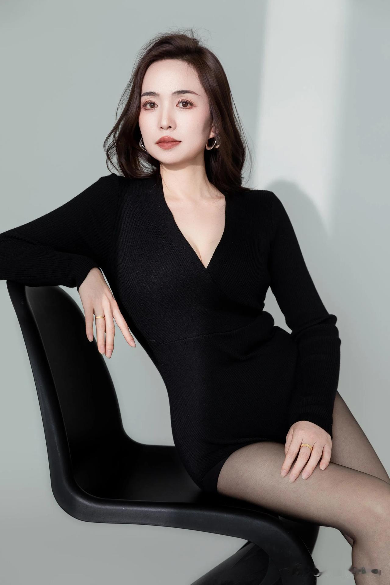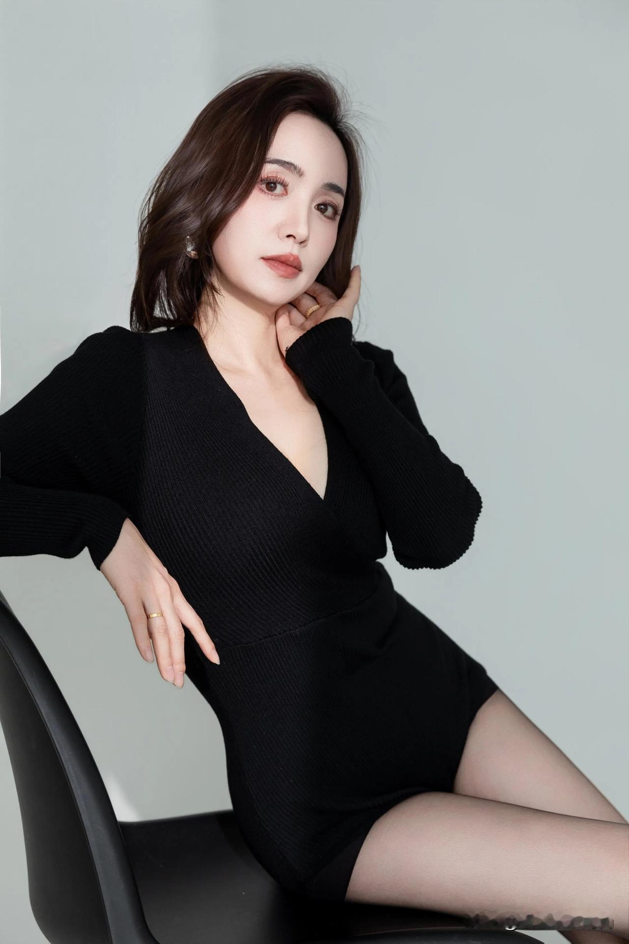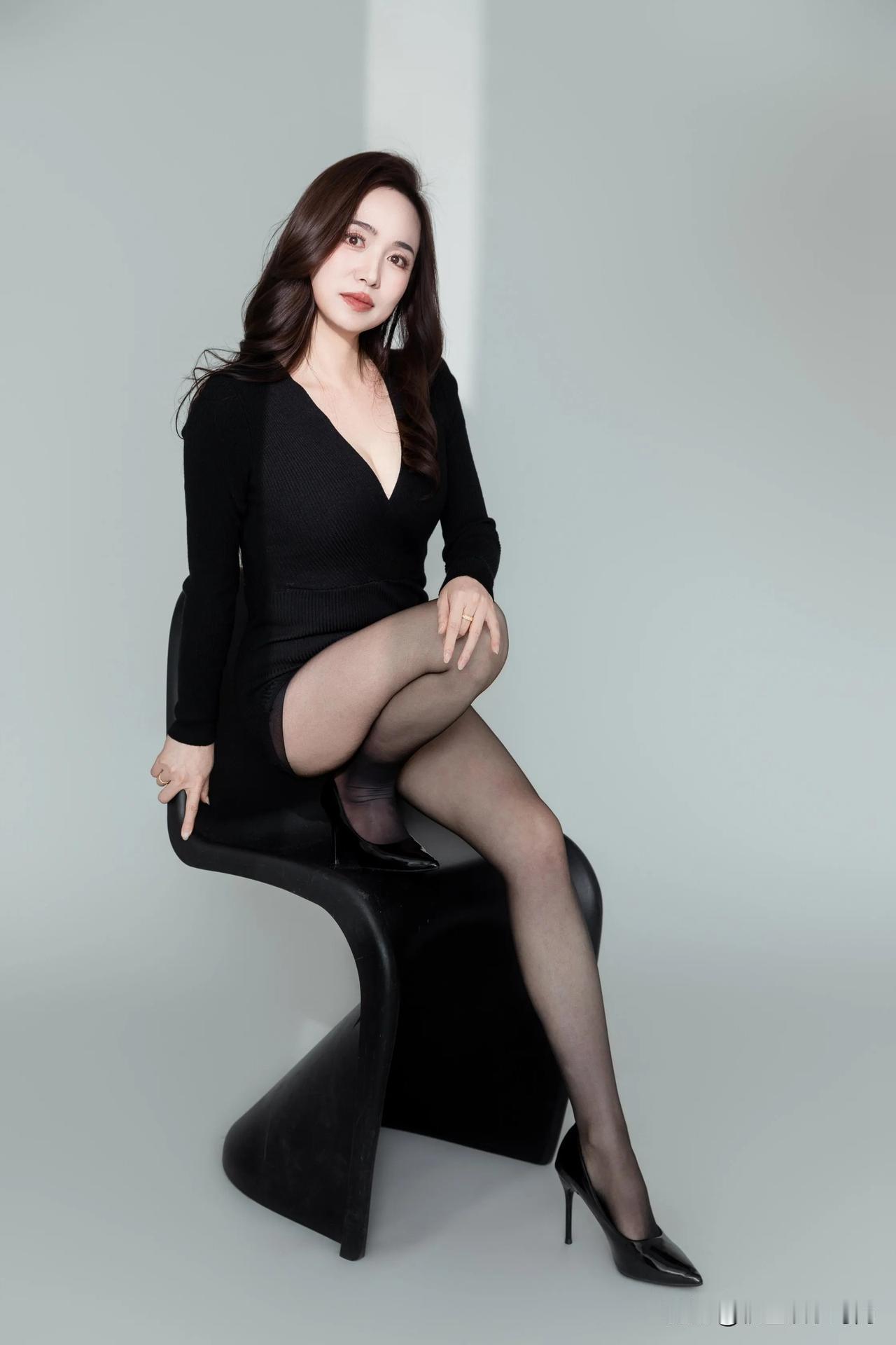 黑色V领连衣裙巧妙勾勒出优雅身形线条,长袖设计为整体增添了几分温婉气质,而V领剪裁更是精妙地提升了造型的精致度。搭配黑色丝袜与黑色尖头高跟鞋,不仅延续了整体的黑色系风格,更凭借丝袜的细腻质感与高跟鞋的利落线条,进一步强化了穿搭的精致感与时尚感。在极简背景下,这身穿搭愈发显得干练优雅,将成熟女性的魅力展现得恰如其分。