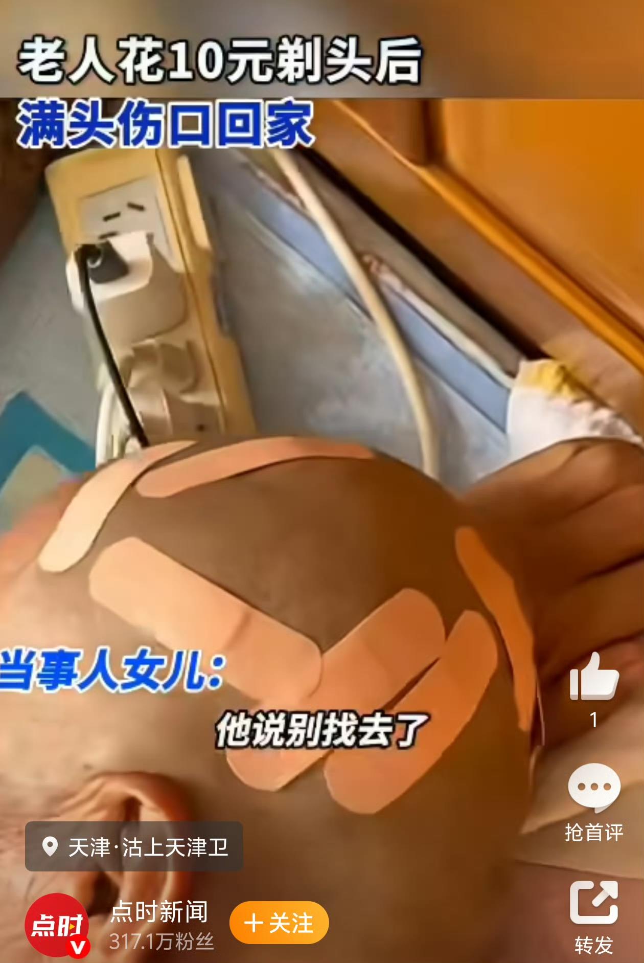 10元理发变“血头”?天津老大爷隐忍照付钱,女儿苦笑买创可贴!背后真相引人深思 一脑袋血痂,竟然是花10块钱理发给理的?最近,天津一位网友分享的视频让无数人看得心疼又气愤。自家老爷子理发归来,后脑勺竟布满密密麻麻的血痕,而老人的态度更让女儿哭笑不得。这起看似普通的消费纠纷,却折射出老年人维权困境与底层谋生不易的双重现实。 (一)事件回顾:女儿开灯瞬间惊呆,老爸满头血痂不忍直视​ 12月1日,天津一位女儿像往常一样给父亲端晚饭,谁知灯光一开,她直接被眼前一幕吓到失语——父亲后脑勺上遍布暗红色的血痂,伤口深浅不一,像是刚经历了一场“头皮手术”。 “我爸还假装没事人似的,问我饭里放了多少肉。”女儿在接受采访时哭笑不得地说。在她再三追问下,老人才支支吾吾道出实情:原来他下午在街边找了个10元快剪摊,没想到理发师傅手艺生疏,推子下去直接刮破头皮。 最让人心疼的是,老人明明疼得龇牙咧嘴,却还是默默付了10元钱,甚至回家后都不敢告诉家人,直到被女儿意外发现。 (二)老人心态引热议:“他们讨生活不容易,算了吧”​ 当女儿气愤地要去找理发师傅理论时,老人的反应出乎所有人意料。 他连忙拉住女儿衣袖:“别去了,人家摆个摊也不容易,再说我都付过钱了。”这句话让女儿既好笑又心酸——明明自己是受害者,却还在替对方考虑。 评论区瞬间炸锅: “这就是老一辈的善良!自己吃亏也不愿为难别人” “看得我眼泪直流,想起我爹也是这样的老实人” -“老师傅手艺差可以理解,但起码得道个歉吧?” 有网友一针见血地指出:“10元理发本质是互助经济,但不能因为便宜就放弃基本标准!” (三)记者调查:10元快剪摊生存现状令人担忧​ 通过走访天津多个小区,记者发现这类低价理发摊普遍存在三大问题: 工具消毒形同虚设:多数摊主只用酒精喷壶随便一喷,推子上还残留着上一位顾客的头发 手艺全靠手感:摊主多是半路出家,有人坦言“理上50个头就出师” 出事无人负责:流动摊位打一枪换一个地方,消费者维权无门 一位从业多年的理发师透露:“现在剃个头成本最少也要5块钱,收10元根本赚不到钱,只能在技术和耗材上压缩。” (四)深层思考:老龄化社会如何保障银发族消费安全?​ 这起事件背后,暴露出一个严峻的社会问题: 老年人成为消费陷阱重灾区:因信息闭塞、维权意识弱,老人常成为劣质服务对象 便宜不等于没底线:便民服务不能以牺牲安全为代价 子女关爱需要更细致:多数老人受伤后选择隐瞒,需要子女主动发现端倪 社会学专家建议:“社区应当建立便民服务白名单,对摊贩进行备案登记,让老人享受既便宜又安心的服务。” (五)网友献计:这些方法能让老人远离伤害​ 事件发酵后,热心网友纷纷支招: “教会爸妈用手机拍下摊位照片,出事有据可查” “社区可以组织正规理发师每月做公益剪发” “给老人包里备好无菌创可贴,关键时刻能应急” 还有理发店老板主动留言:“欢迎70岁以上老人来店免费理发,我们保证温柔手艺人!” 老爷子的善良值得我们尊重,但社会不能总是让善良人吃亏。当10元理发变成“头皮冒险”,我们需要的是更完善的监管机制和更温暖的社区互助。毕竟,谁家没有老人?谁又不会变老呢? 欢迎在评论区分享你的看法:如果你遇到这种情况,会怎么处理?