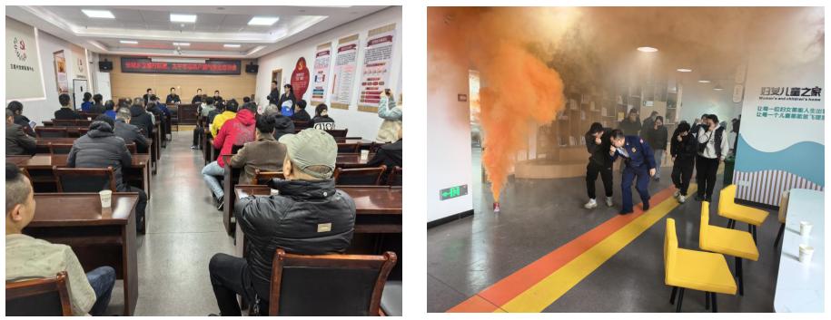 理论培训结束后,全体参训人员移步至预先设定的演练场地,开展消防疏散演练。演练模拟某商铺因操作不当引发初期火灾,现场浓烟弥漫。现场安全员迅速组织店内人员及顾客,用湿毛巾捂住口鼻,低姿弯腰,按照疏散指示标志,沿着预定路线快速、有序撤离至室外安全集合点。