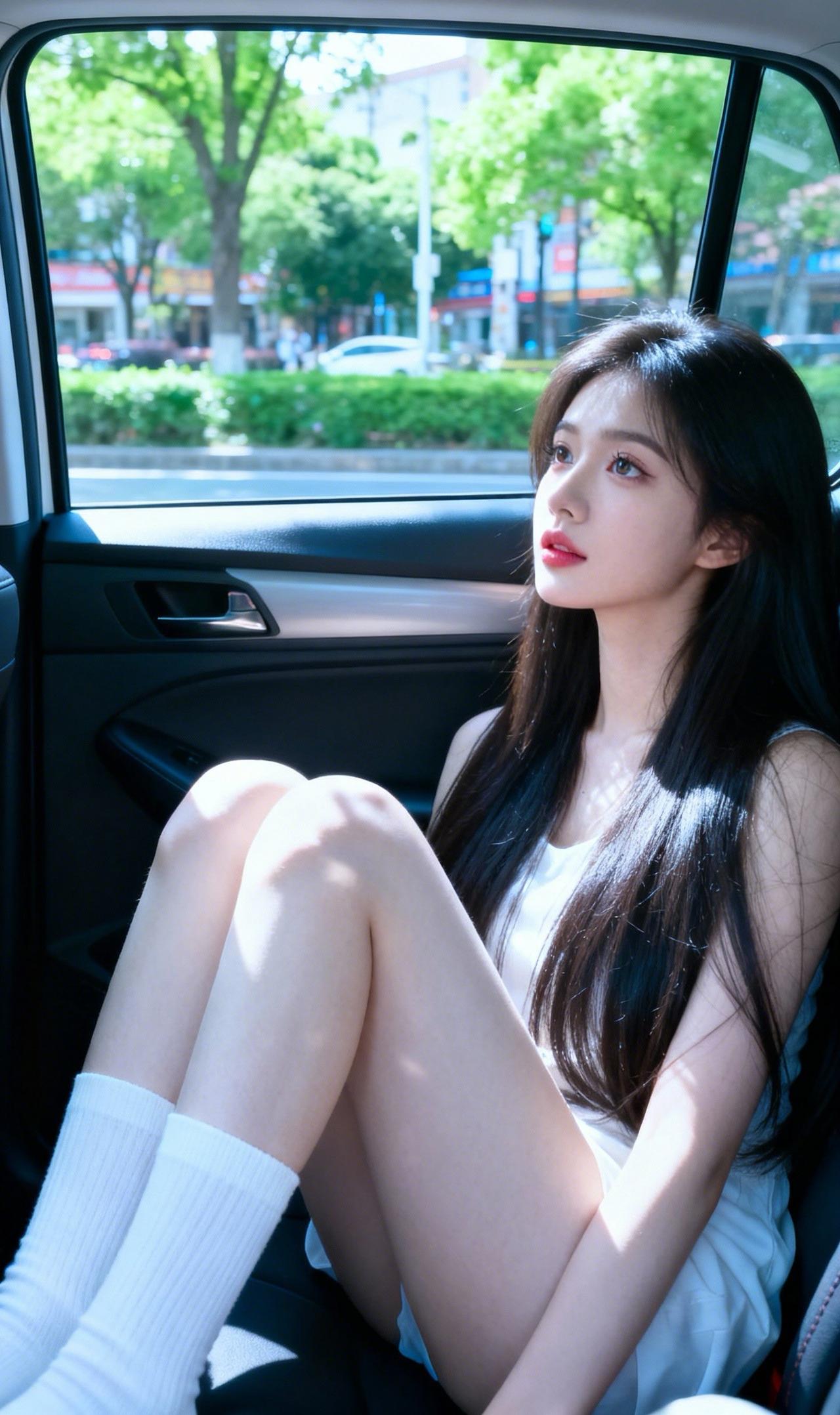 车外春光正好,车中美人如画。车中美人醉 车中别样倩影