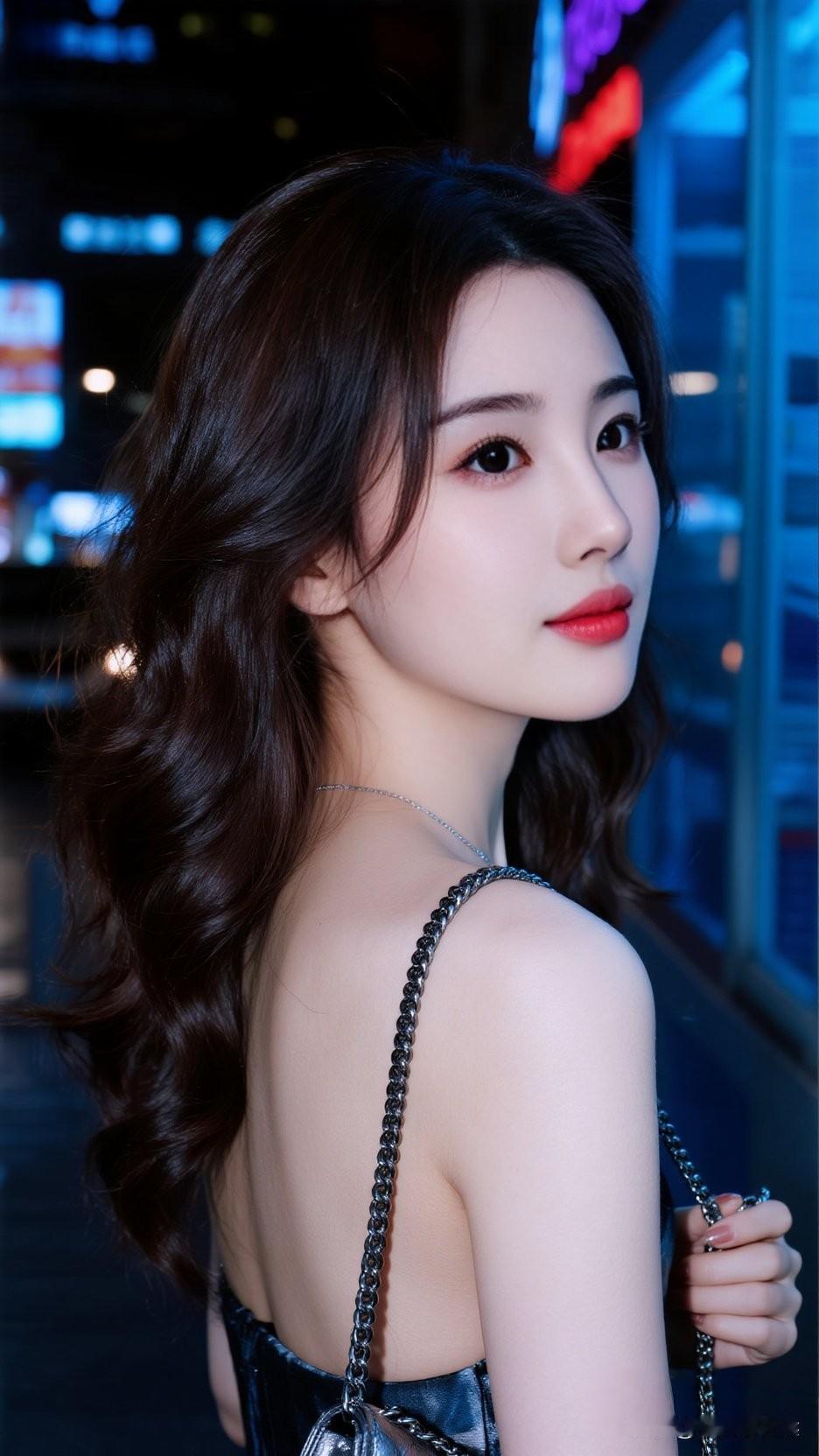 都市夜色下的时尚少女,红唇与黑裙的完美搭配,尽显优雅与自信。治愈系少女写真怎么拍