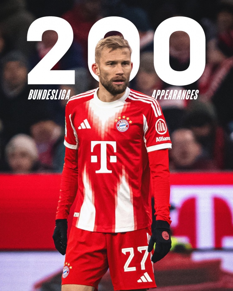 此役是莱默尔出战的第200场德甲比赛,拜仁官方社媒晒出海报,祝贺他达成这一里程碑。