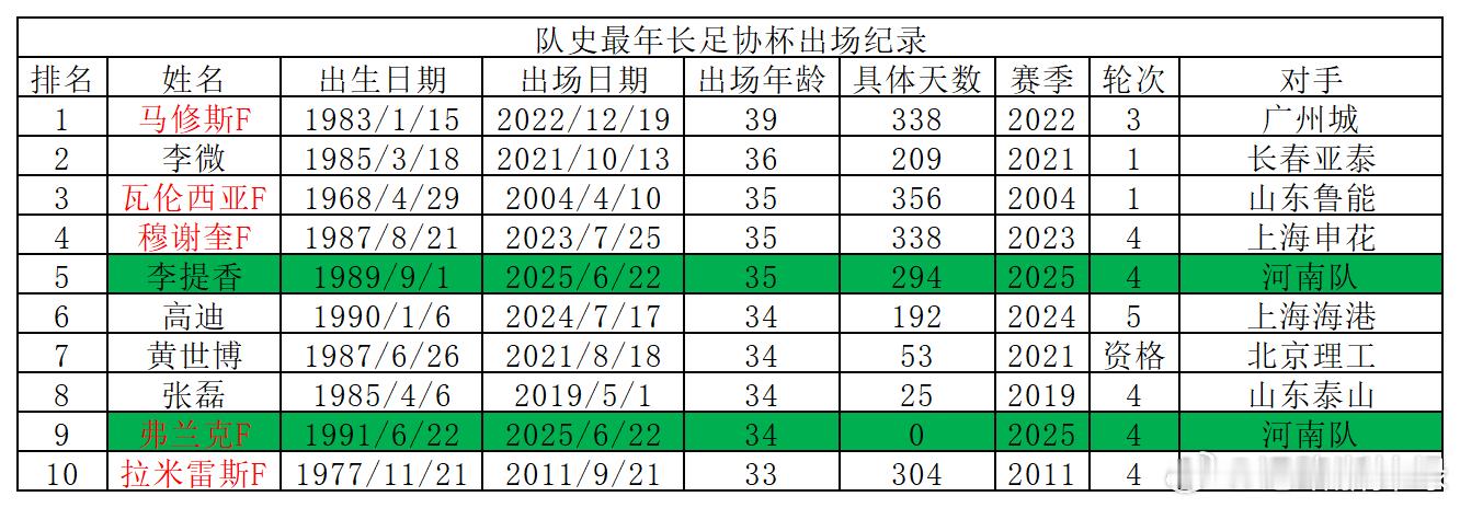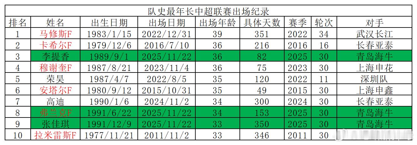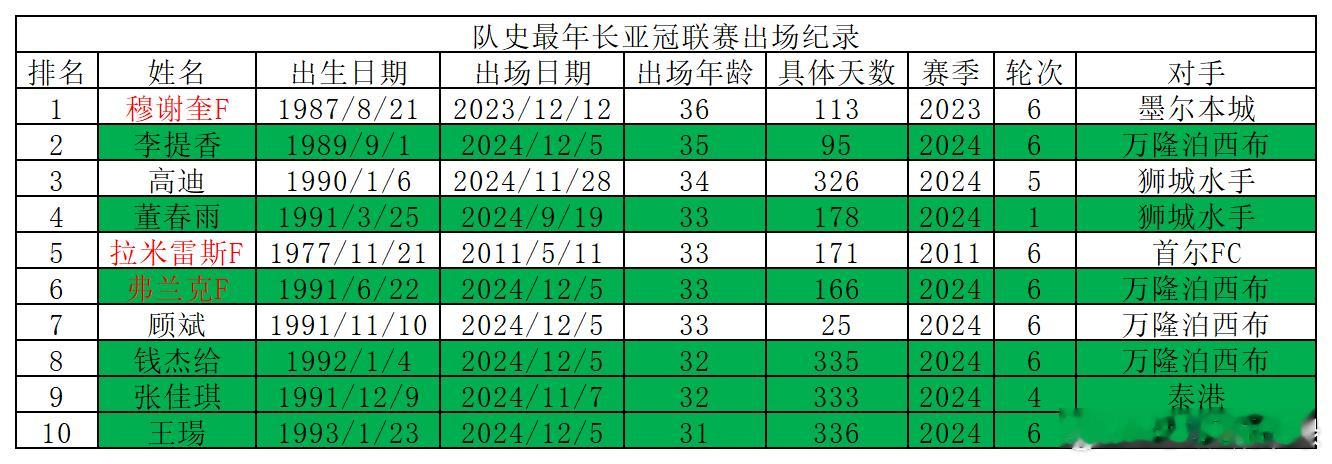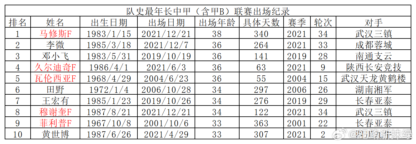 浙江队队史最年长出场纪录(及四项主要赛事最年长出场纪录)发布如下,请各位审阅,如