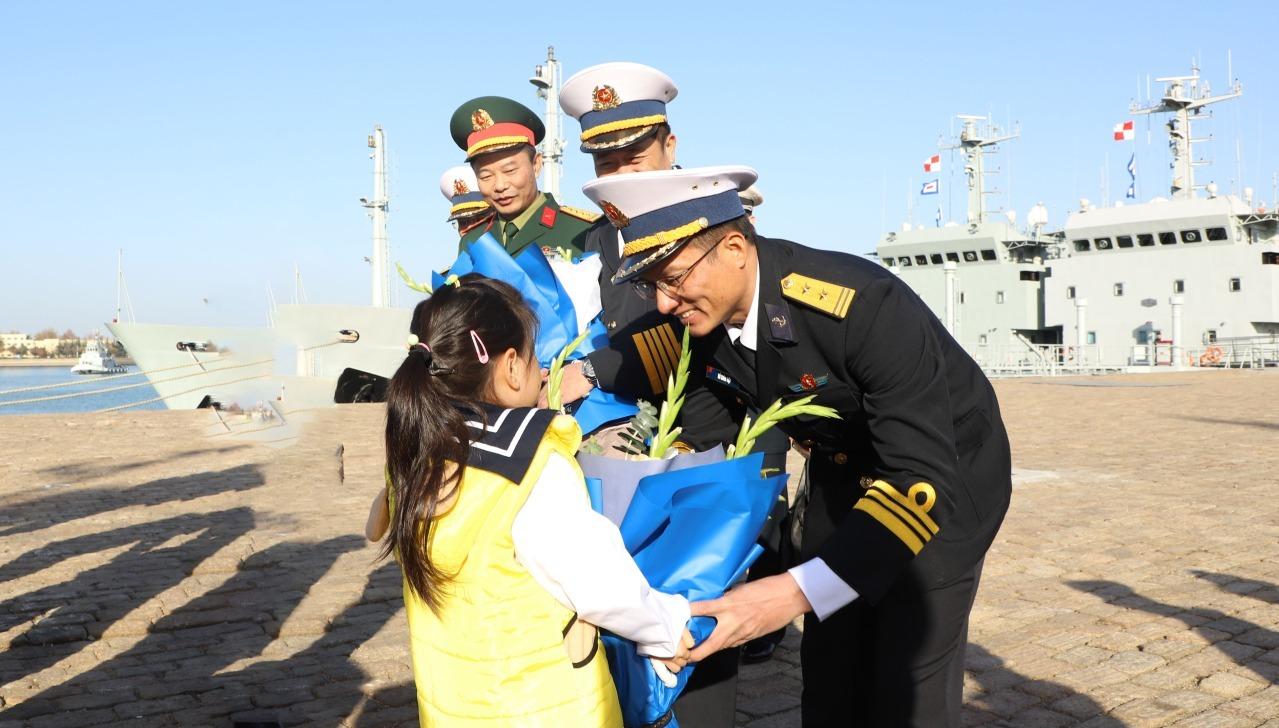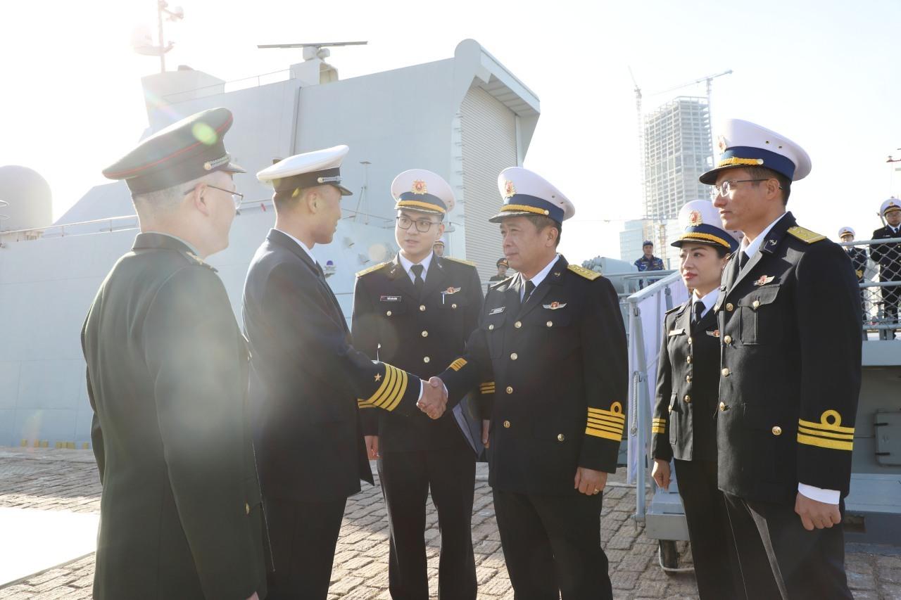 12月1日上午,越南海军第四海区162舰艇旅11661K型即猎豹3.9级护卫舰HQ015“陈兴道”号,及由越南海军第四海区副司令阮永南大校率领的越南人民海军代表团已抵达山东省青岛市港口。这是“陈兴道舰”对中国、日本和韩国进行礼节性访问的第一站,该舰是越南海军猎豹3.9级护卫舰的四大金刚之一。其舰长为中校军衔,与越南海军舰艇旅下属的海队队长平级,图6-8中的中校很可能就是该舰舰长。