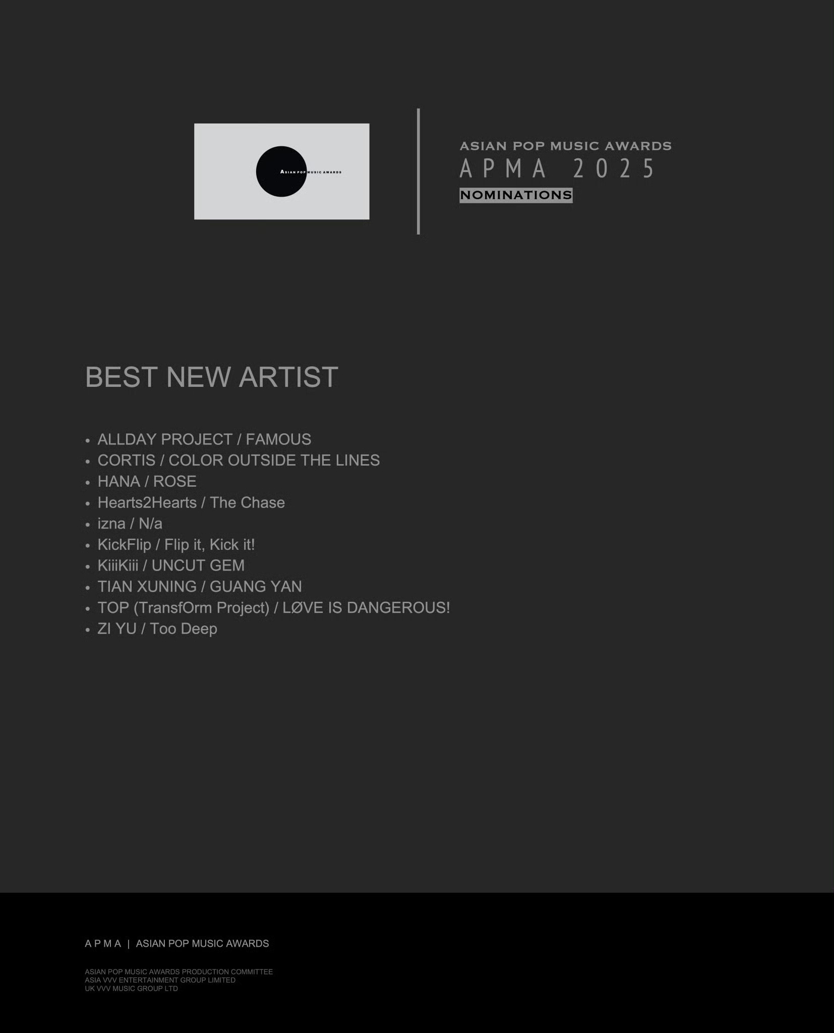 2025亚洲流行音乐大奖(APMA)最佳新人奖提名:Cortis
