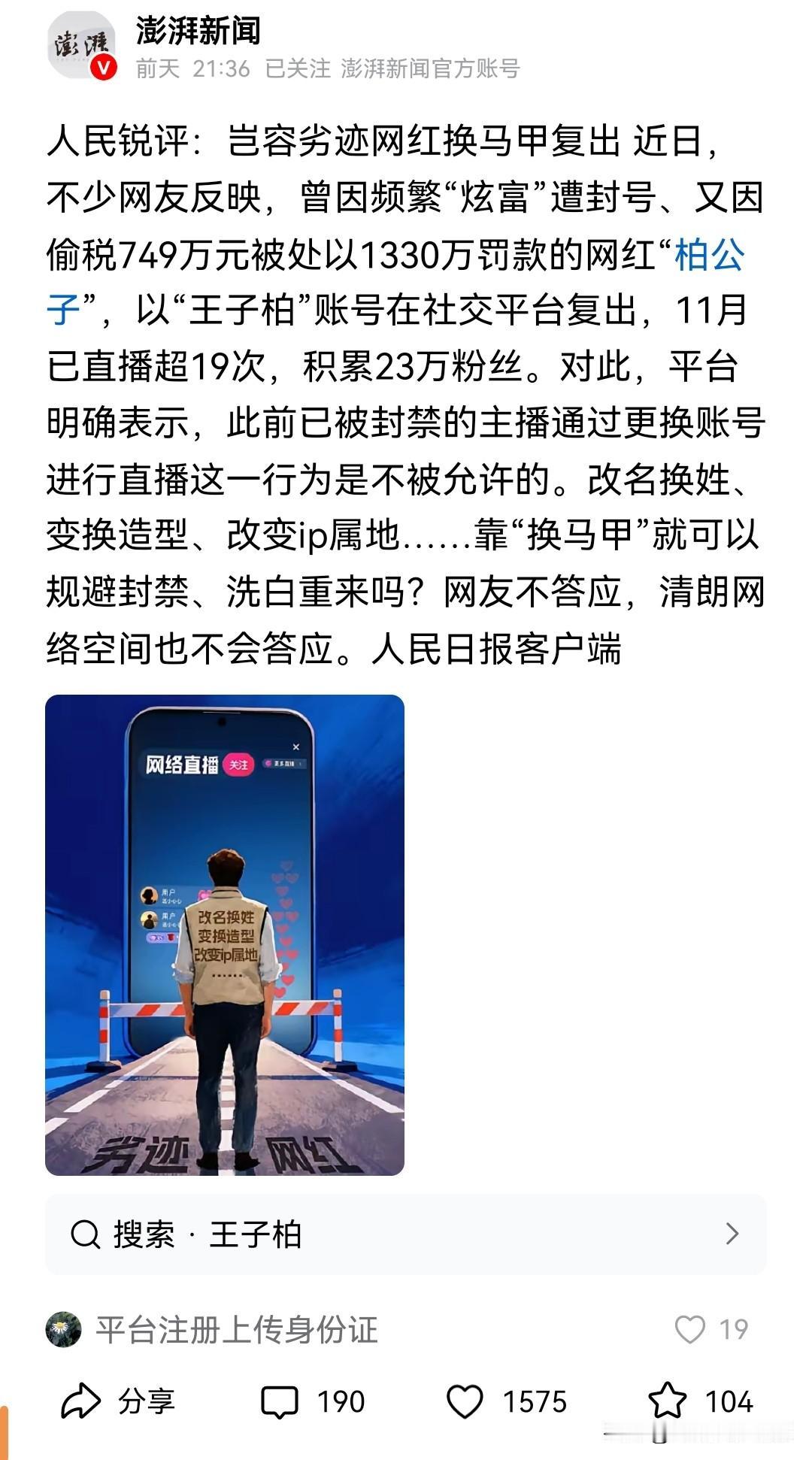 我想做为家长的朋友,都由衷支持平台禁止柏公子这类网红换名复出的决定。看着孩子每天刷着短视频,我们最担心的就是这种炫富拜金、男女不分模糊是非的所谓“网红”带偏孩子的价值观。 当孩子问我“为什么他们赚钱那么容易”时,我很难解释那些光鲜背后可能存在的偷税漏税问题。作为父母,我们努力教导孩子踏实做人、守法诚信,而这些网红的行为却传递着完全相反的信号。 平台这次严格监管,不仅是在维护网络秩序,更是在帮我们家长守住教育的第一道防线。让我们的孩子能在更加清朗的网络环境中成长,这比什么都重要。支持平台继续严管,为孩子们营造一个健康的网络空间。柏公子 柏公子豪宅