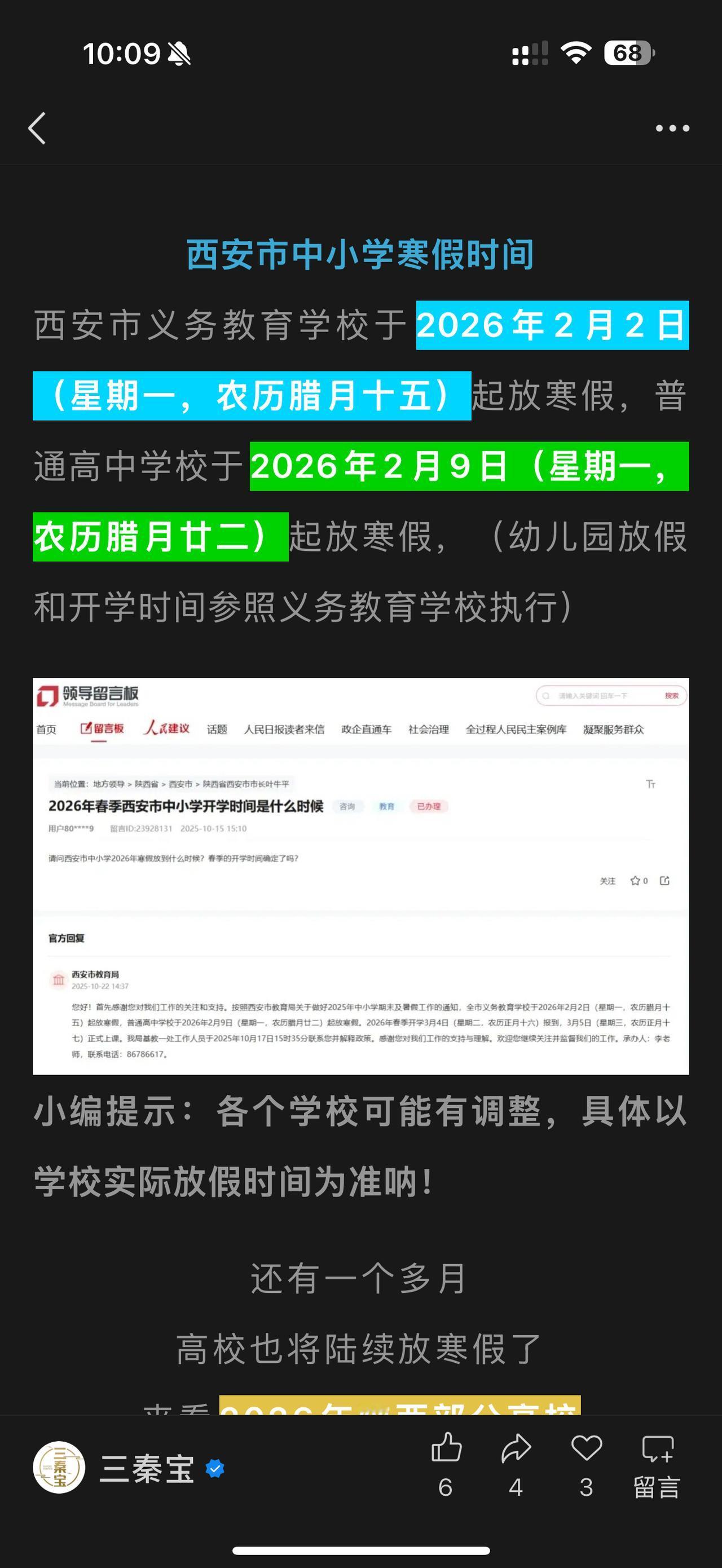 陕西高校与西安中小学寒假确定,西安邮电大学最慷慨,有的高校把自己弄得和重点高中一样。西安普通高中2月9日放假,3月4日收假,只放20多天假,把自己弄得和办成高中的大学一样。不过全国大多数高中放假时间都比较短,基本一个德性,从9月1日上学到2月9日,有的学校还周末悄悄补课,苦了高中孩子,近视眼增多,拼命刷题考入不一定能找到理想工作的大学!
