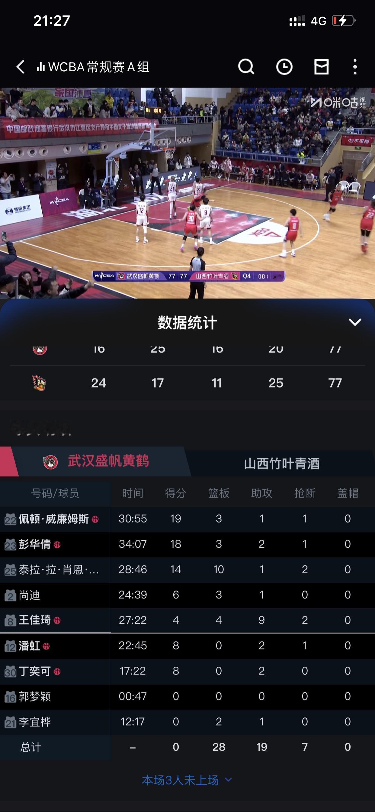 王佳琦10助攻帮武汉79:77绝杀山西女篮 山西女篮翟若云空砍29分9板1助1断! 就在刚刚,我看完北京与新疆女篮的比赛,进去看这场比赛,正好还剩下1分多钟,当时双方打平,73:73 然后一直胶着到最后不到十秒钟,由王佳琦持球来到本方半场,抓住机会,看到队友潘虹的位置,精准制导,潘虹不负所望,篮下打进,让比分彻底定格在79:77 这个比赛比北京打新疆那场还精彩,好在我看到了最精彩的一球! 武汉女篮🐂!