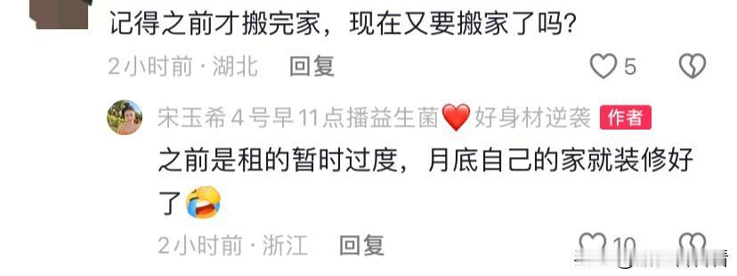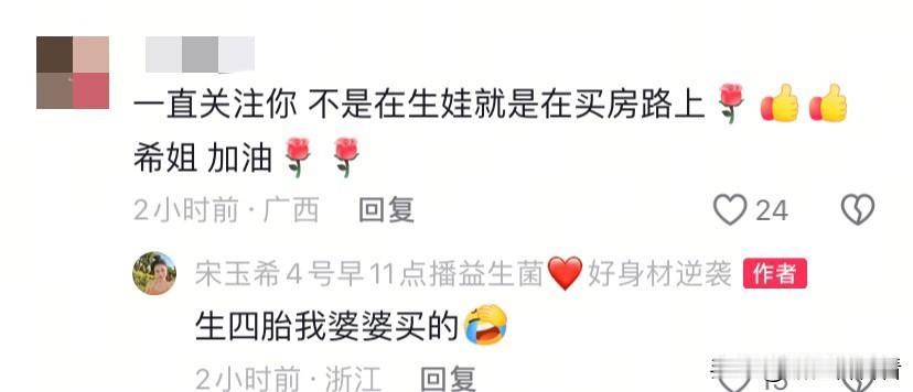 宋玉希25号将搬新家了,这次是在杭州买的,而且是独栋别墅,而且院子看起来还挺大的。 有网友说,这些年宋玉希不是在生娃,就是在买房的路上。 以前在广西买了几套房,如今来到杭州,把广西的卖掉,婆婆给付了首付,一起凑钱买了这栋房子。 这是生四胎婆婆送的礼物,也算是一次性到位,有这么多孩子有套别墅也能住的开,也方便。 如今房价也不是那么高了,广西的房子卖掉换杭州的也是明智之举,毕竟以后要在杭州发展,广西也住不了那么多房子,留一套回去的时候暂时住住也挺好。