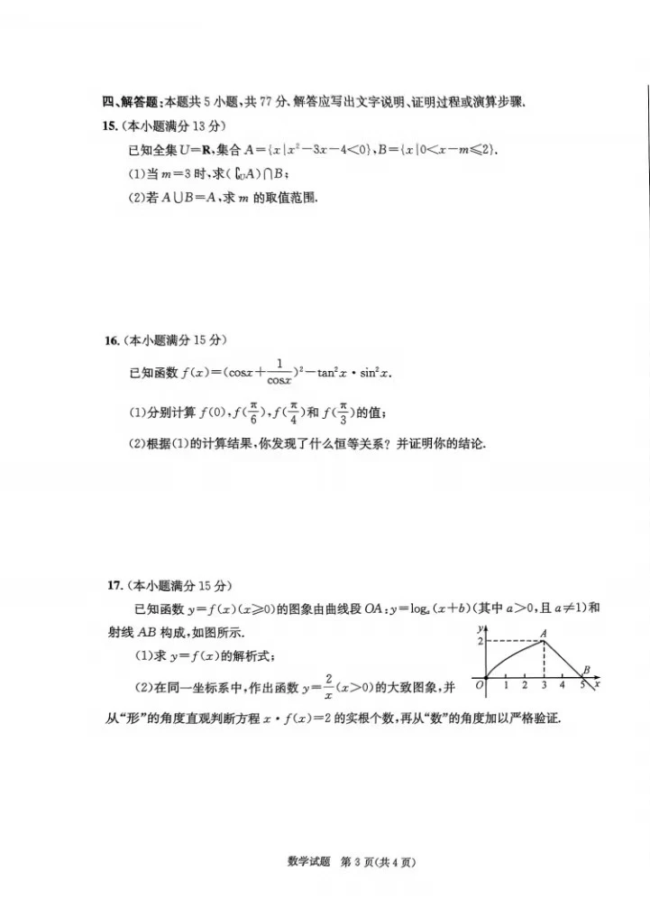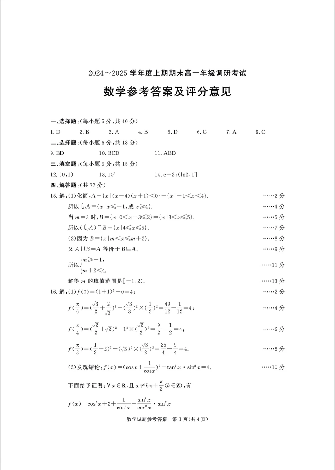 新鲜出炉!成都高一上调研考试数学试卷&答案