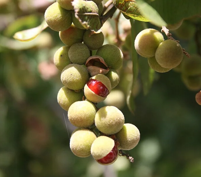 这种树的红色果实是人类的美味佳肴,也是鸟类和动物的最爱。夹克李与荔枝有关,都是无患子科植物,是鸟类或野生动物的天然营养补充。 这种美味多汁的水果带有酸味,用于制作蜜冻、果冻、醋和酒精饮料。 夹克李是一种长寿、耐寒、常绿的中小型树木,高度为2-8米。在理想条件下,它可以以中等速度生长,但在干燥寒冷的条件下生长缓慢。