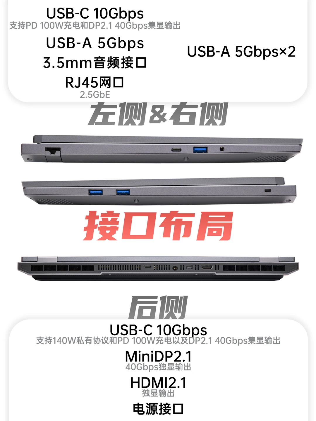 机械革命 蛟龙16 Pro的配置选择众多,它与RTX 5060版本在周边规格和散热模组上几乎一样,屏幕刷新率提升到300Hz,内存和固态的容量都翻倍了。
