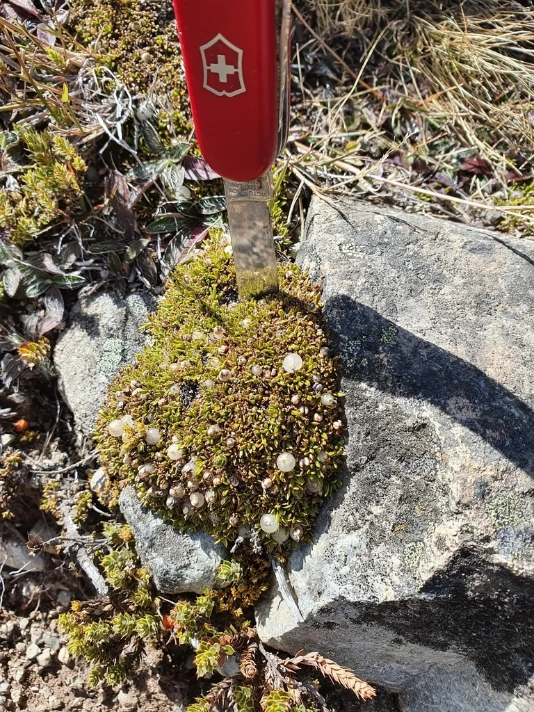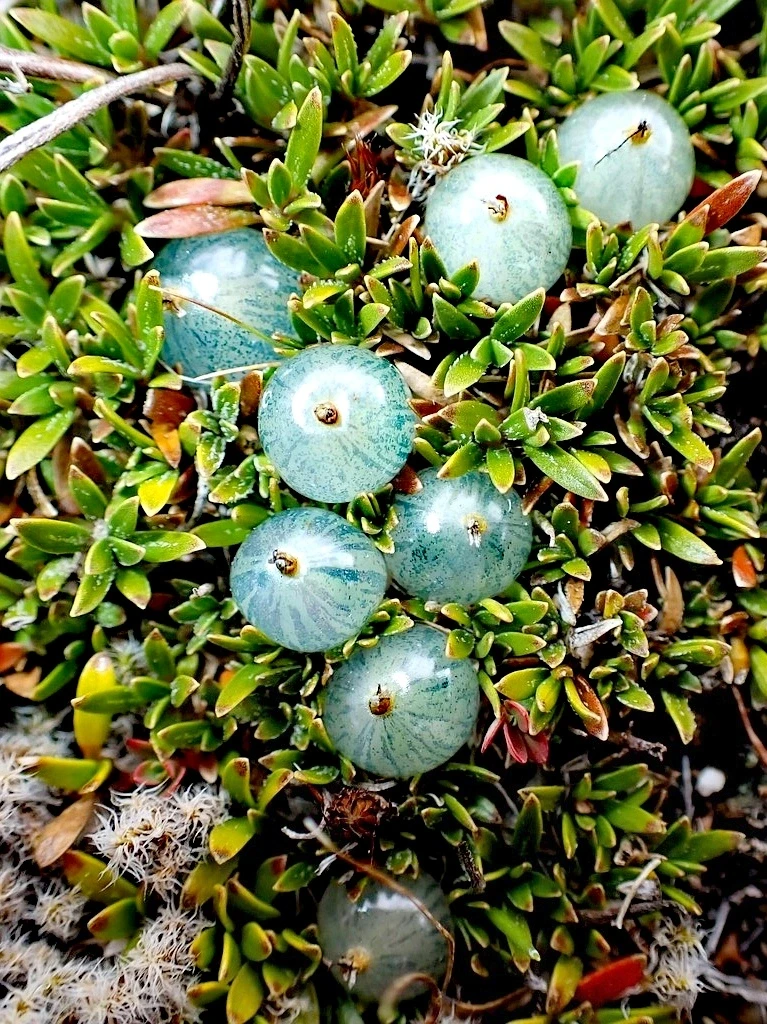 一种产于新西兰的矮小、低矮、蔓延的灌木,形成直径几米的斑块,有直立的成对狭窄的小叶,上表面有细小的毛,栖息在开阔的高地地区。叶5-10毫米长。茎上叶基部之间的一小群毛。一种原产于新西兰的垫状灌木。 它是一种耐寒的风授粉植物,长0.1米(4英寸)乘0.5米(20英寸)。 果实在八月成熟,可以吃,微甜,呈蓝白,植物雌雄异株。