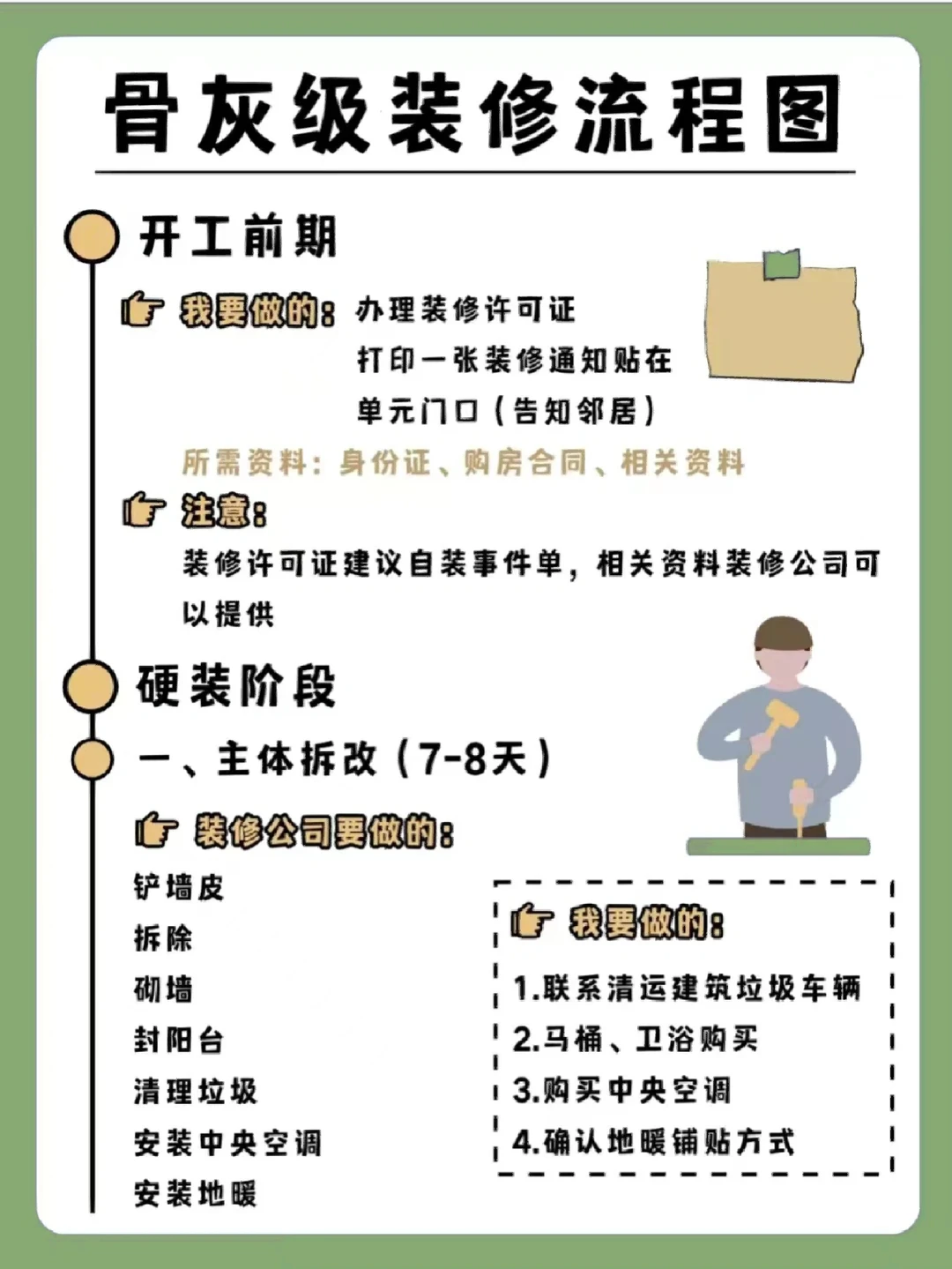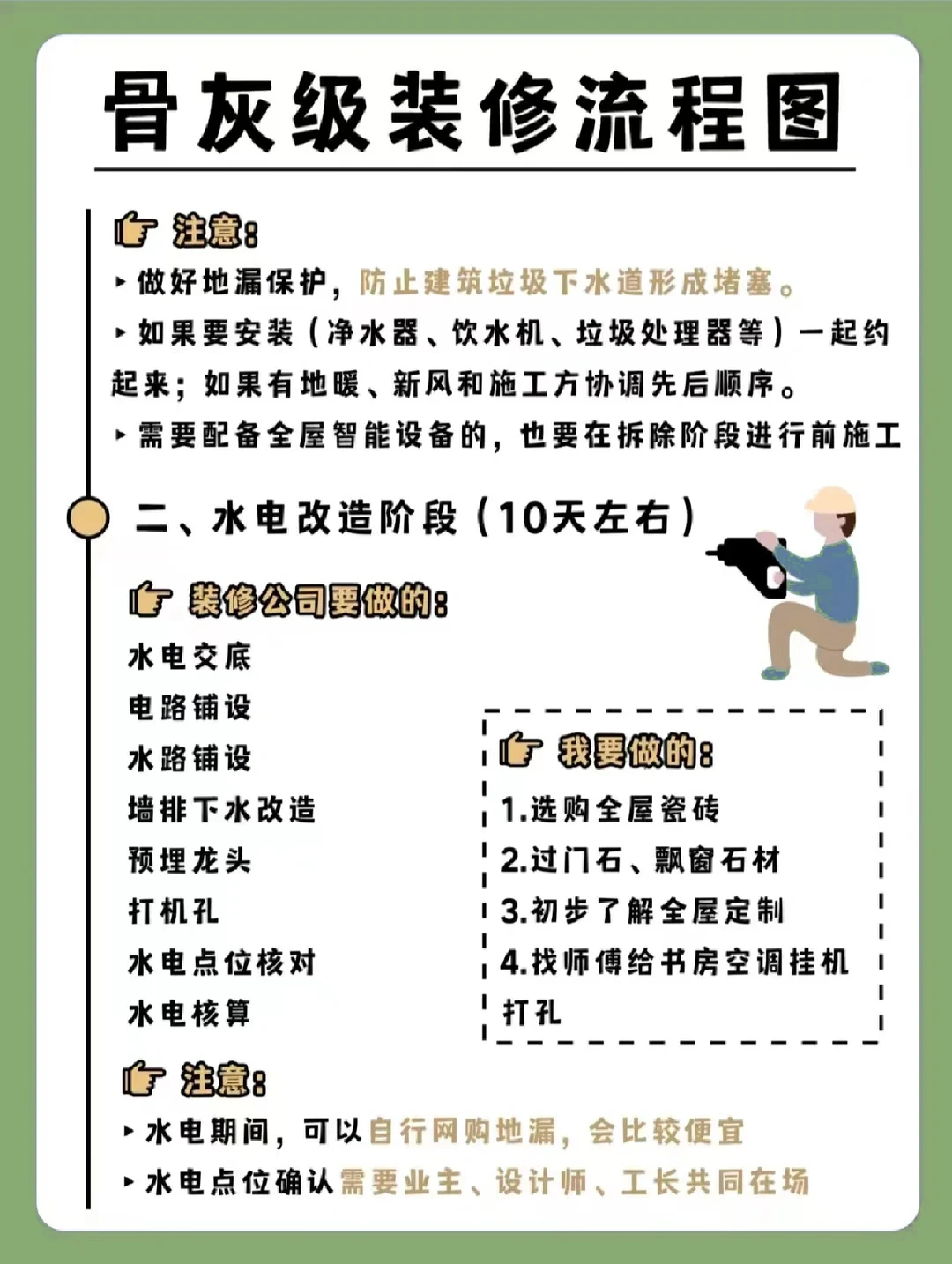 今天给大家整理了老房翻新的流程图,装修小白一定要记得点赞收藏,避免用的时候找不到啦[种草R][种草R][种草R]