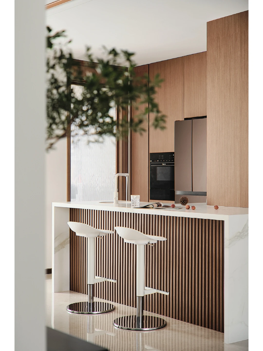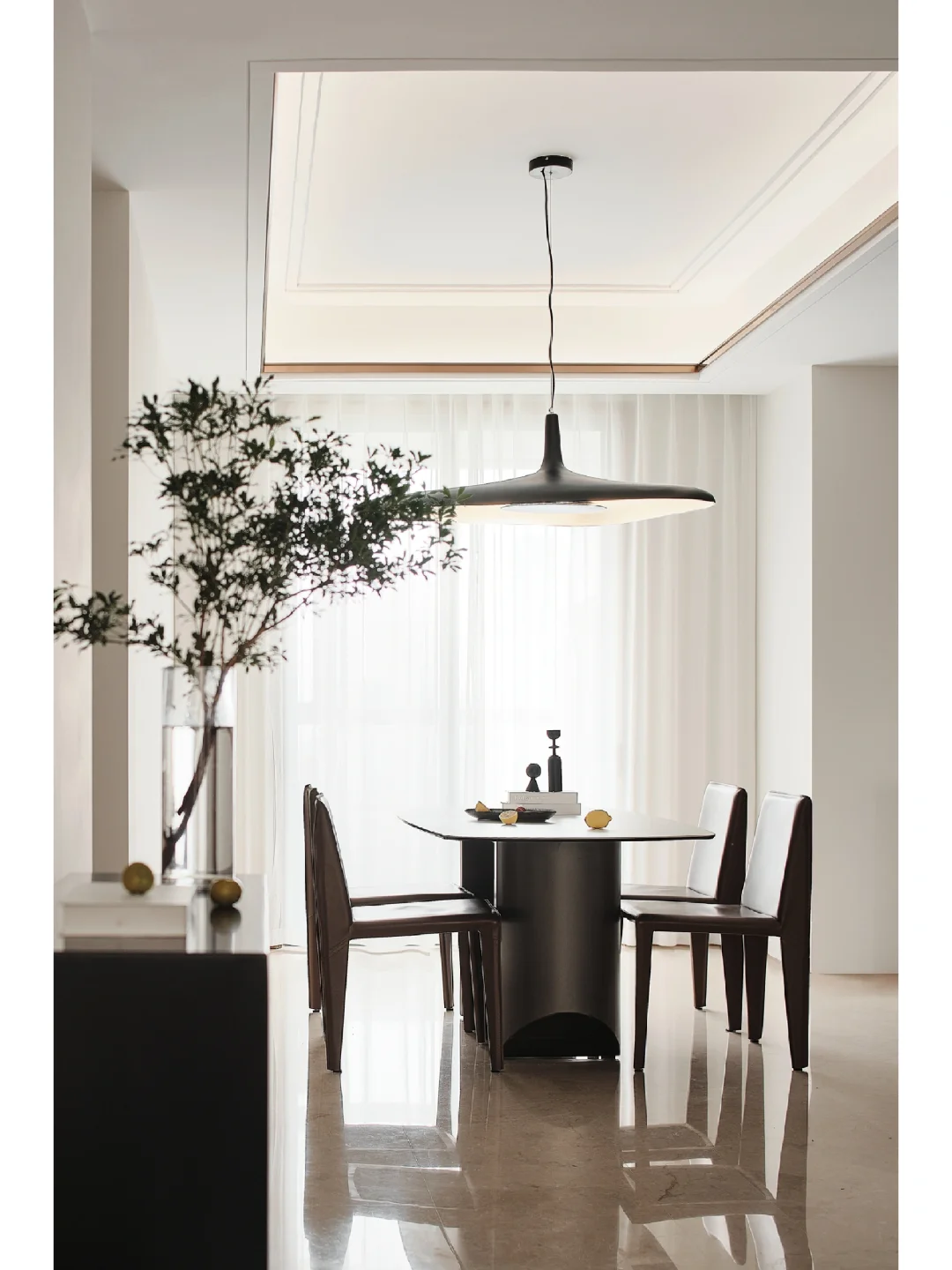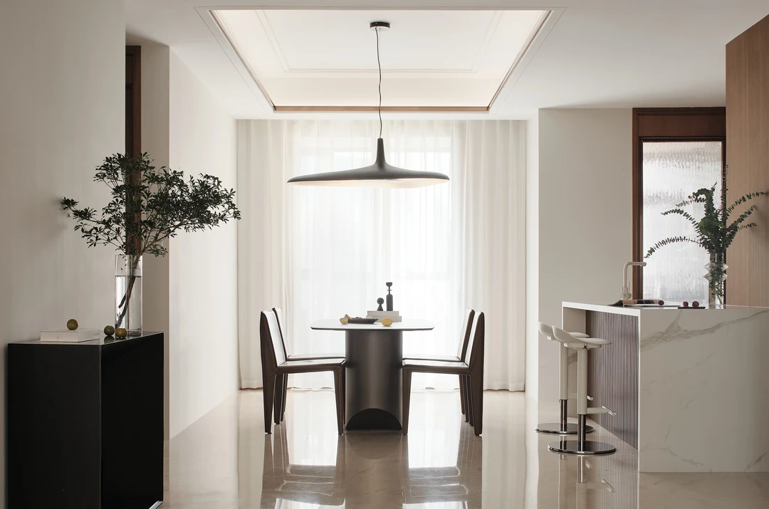 低饱和色系就是自然滤镜,餐厅以木与白和石材为主,懂得生活的人,就是将美的体验渗入生活中的每一秒。赭褐色轻盈质感使就餐变得轻松愉快,这样的搭配,可以使餐桌更加现代化。