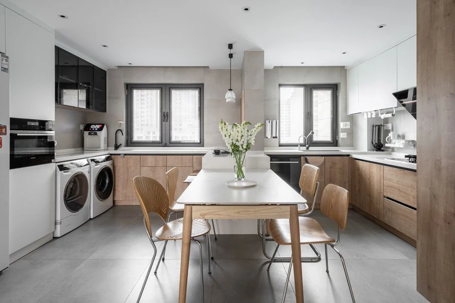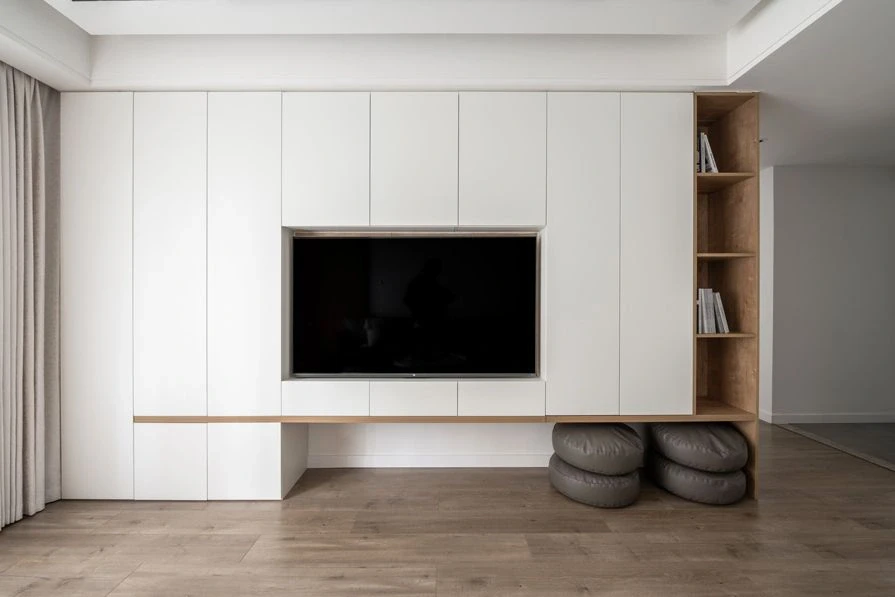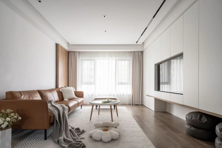 原木北欧风装修是近年来备受欢迎的一种装修风格,它以原木色为主调,搭配简洁、明亮的白色,营造出自然、清新、舒适的居住环境。今天给大家分享的本案是一个79平米两室,客厅空间比较小,地面采用木色地板通铺,明亮且显空间开阔,墙面采用白色乳胶漆涂刷,整体硬装部分以简单为主;皮质沙发,搭配圆形双拼大理石纹理茶几,电视背景墙定制满墙柜,增加收纳,板正利落且时尚大气~