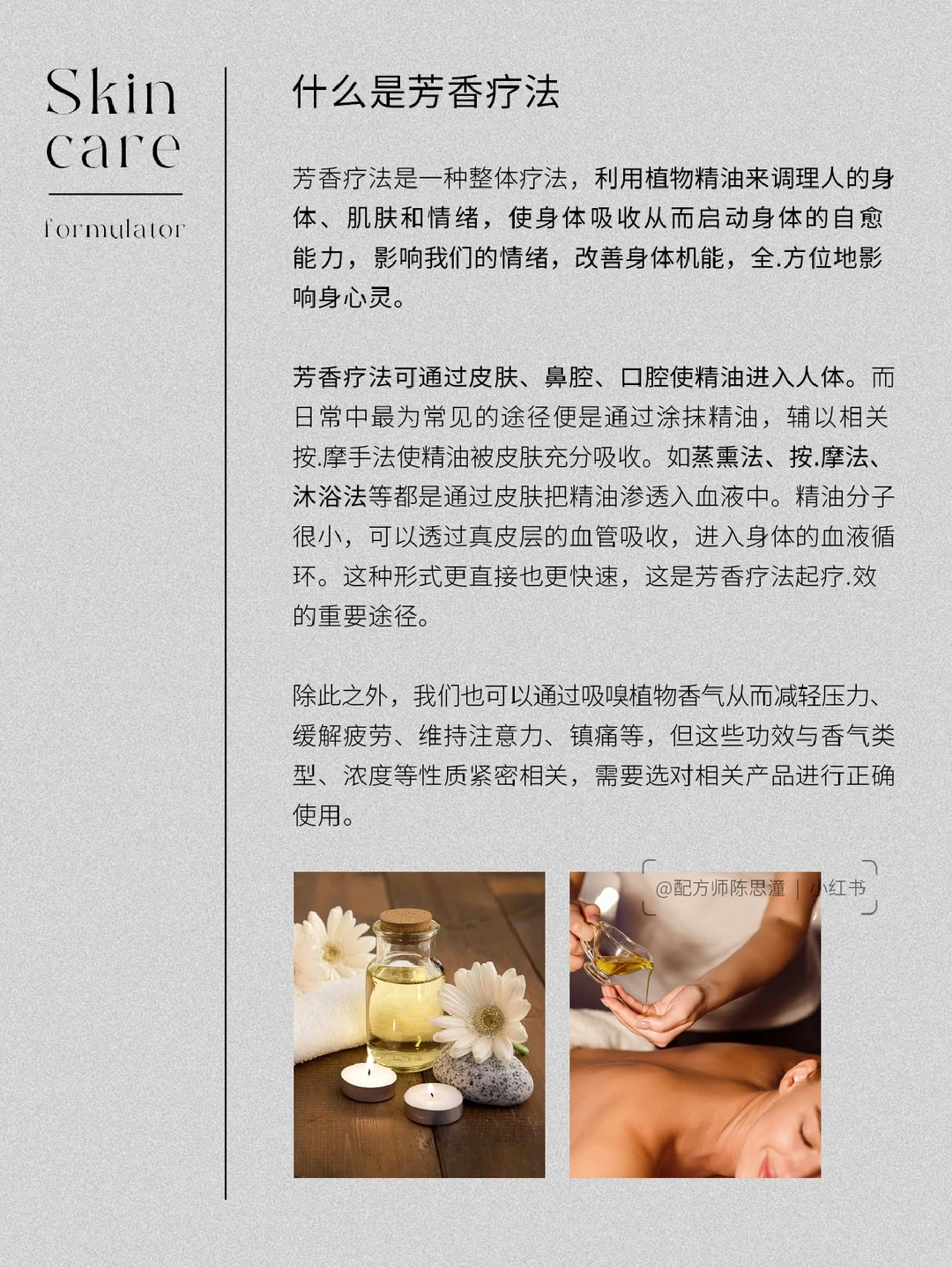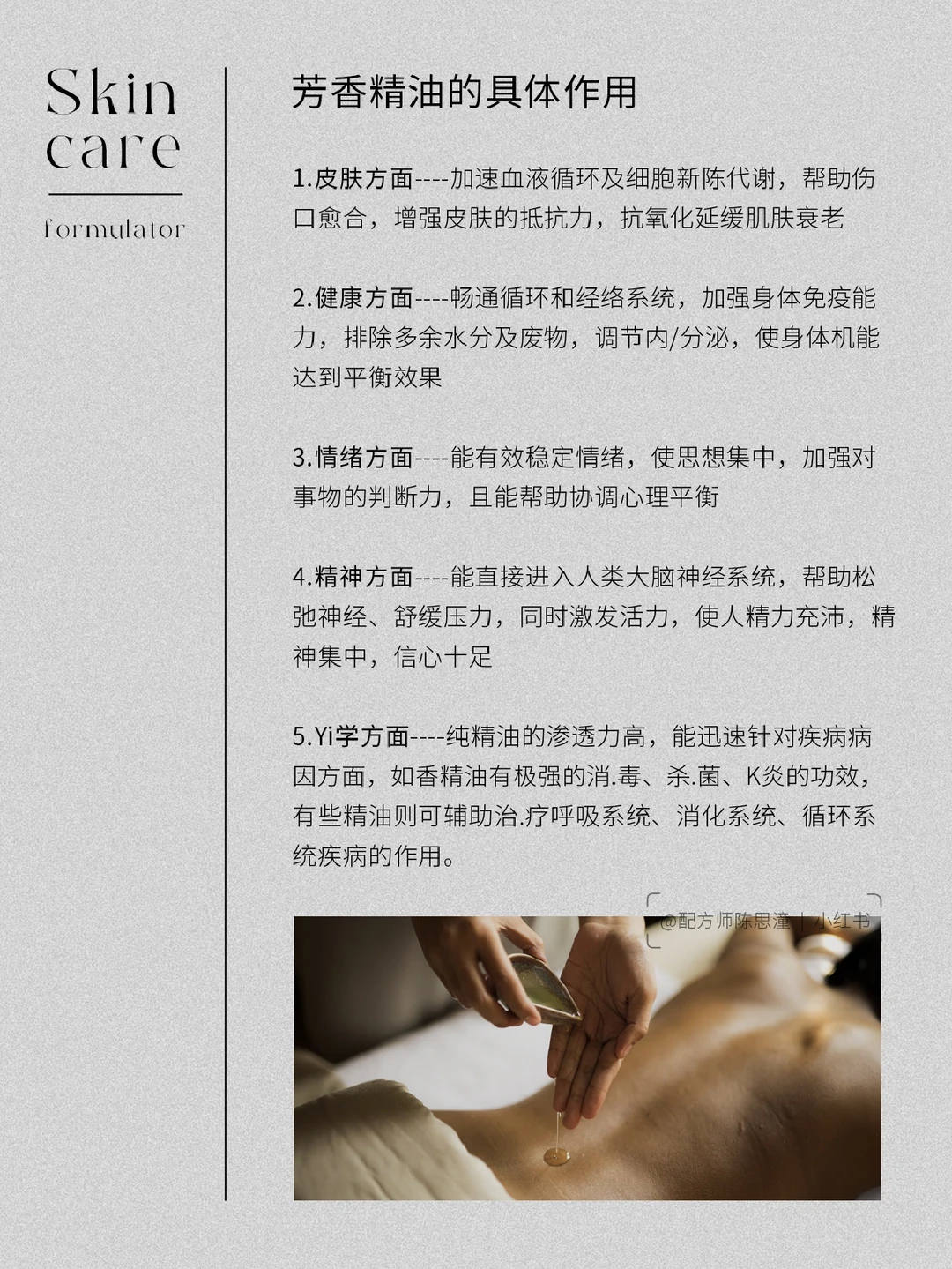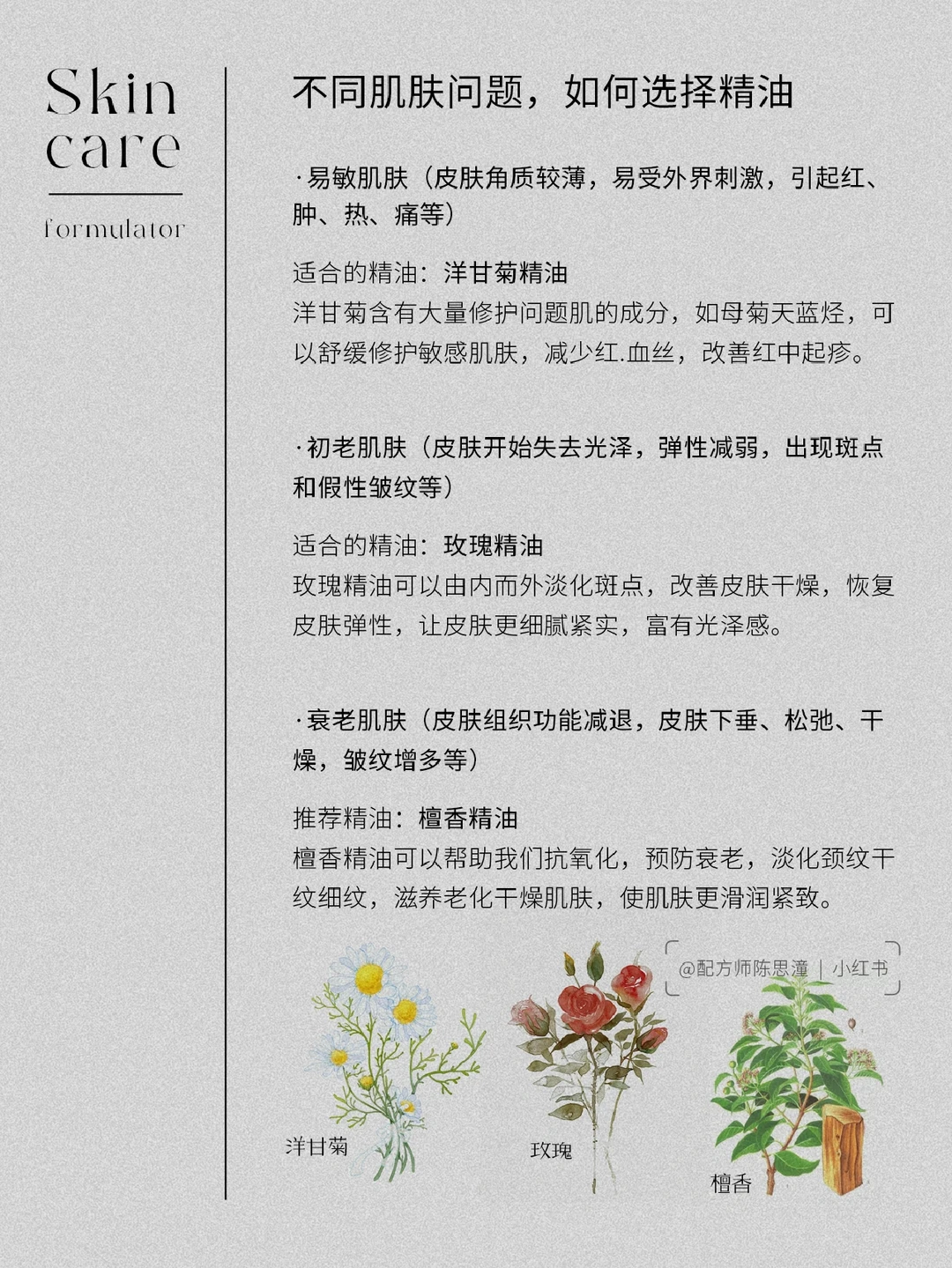 • 精油是什么 • 精油的分类 • 什么是芳香疗法 • 芳香精油的具体作用 • 不同肌肤问题,如何选择精油 • 精油的使用注意事项 一起来了解一下吧,下期还想看什么可以❤➕🍎告诉我哦