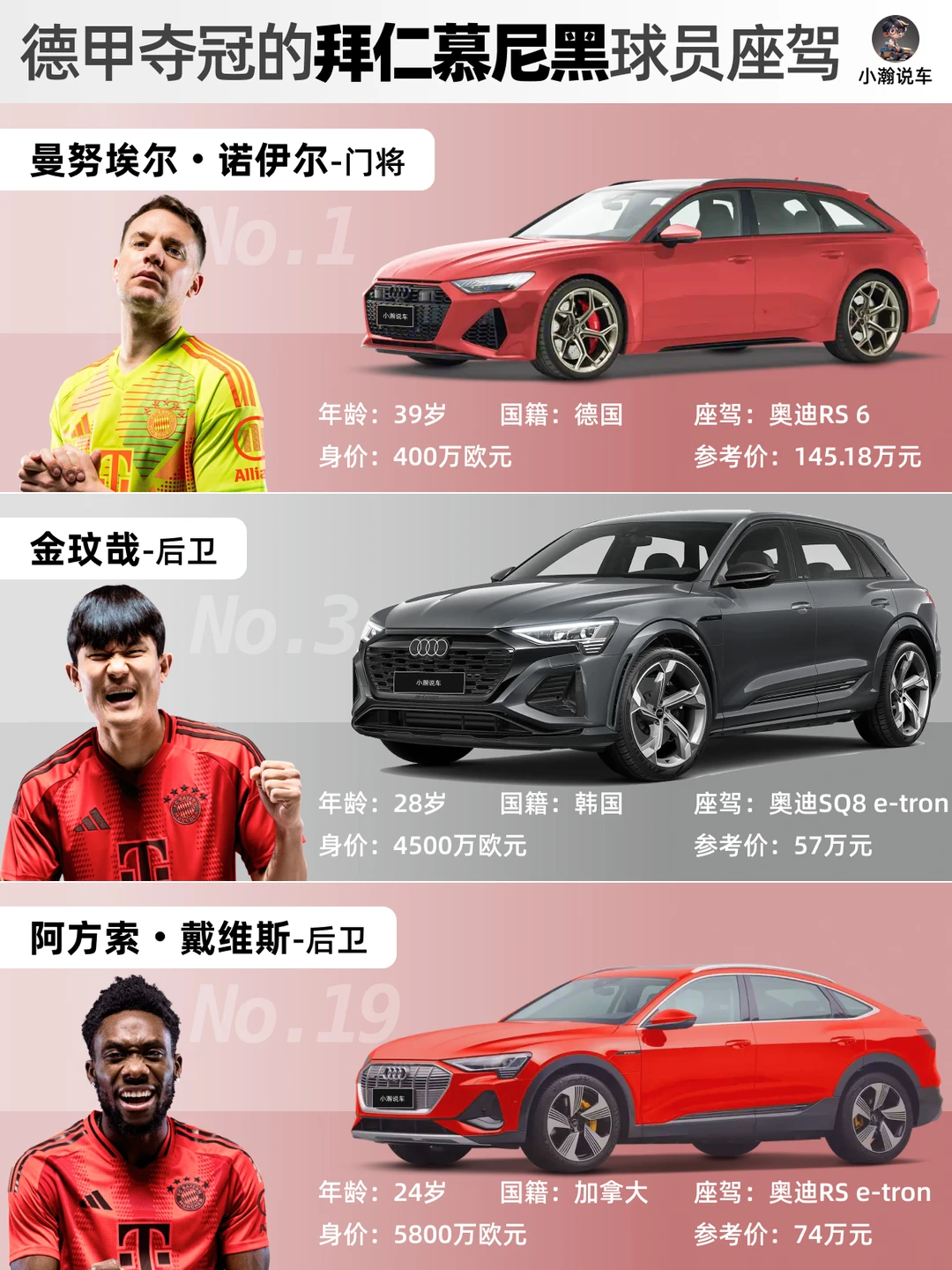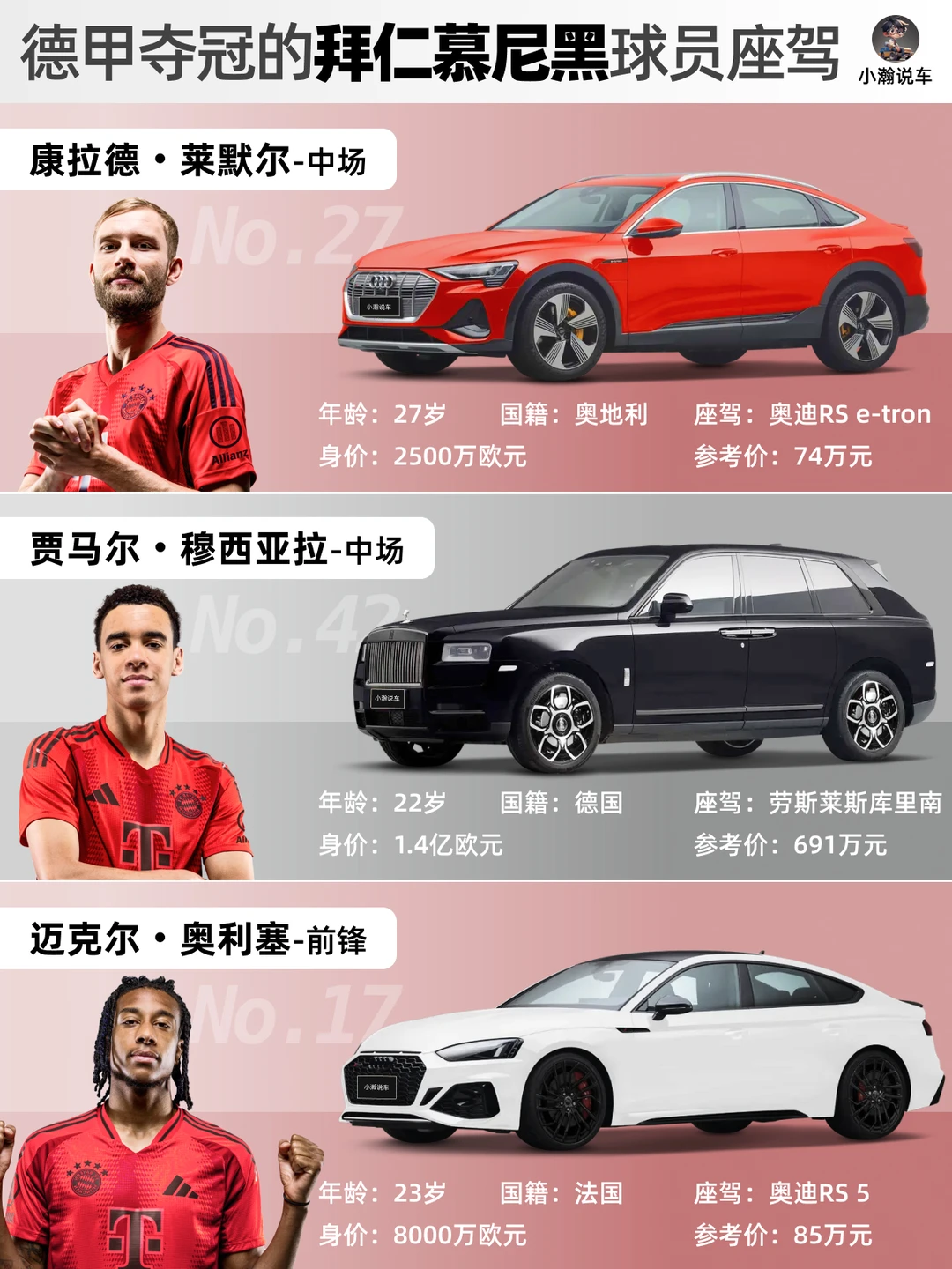 随着勒沃库森被弗赖堡2-2逼平,拜仁慕尼黑提前2轮获得了本赛季德甲🏆! ⚽️德甲巨人用这座来之不易的德甲🏆宣告:南部之星,永不坠落!而31岁的英格兰神锋——哈里·凯恩也终于甩掉了“无冠魔咒”的枷锁! 🚗那么,终于有了重要🏆头衔的凯恩和他的队友们都开的什么车呢?一起来看看!