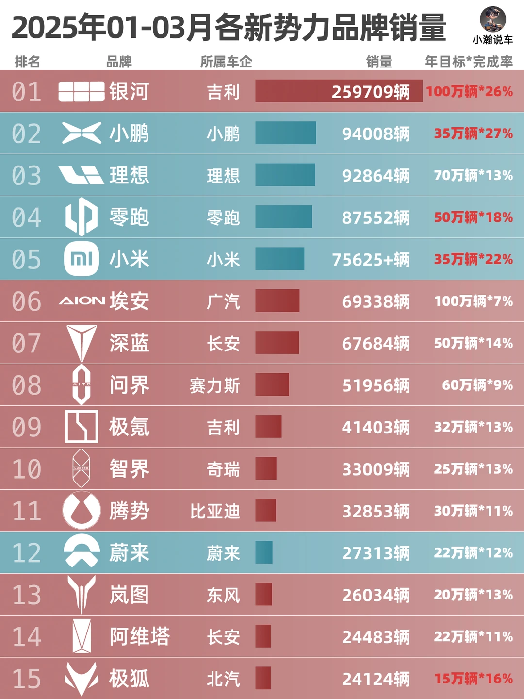 进入4月,各家新势力品牌纷纷公布3月销量:
