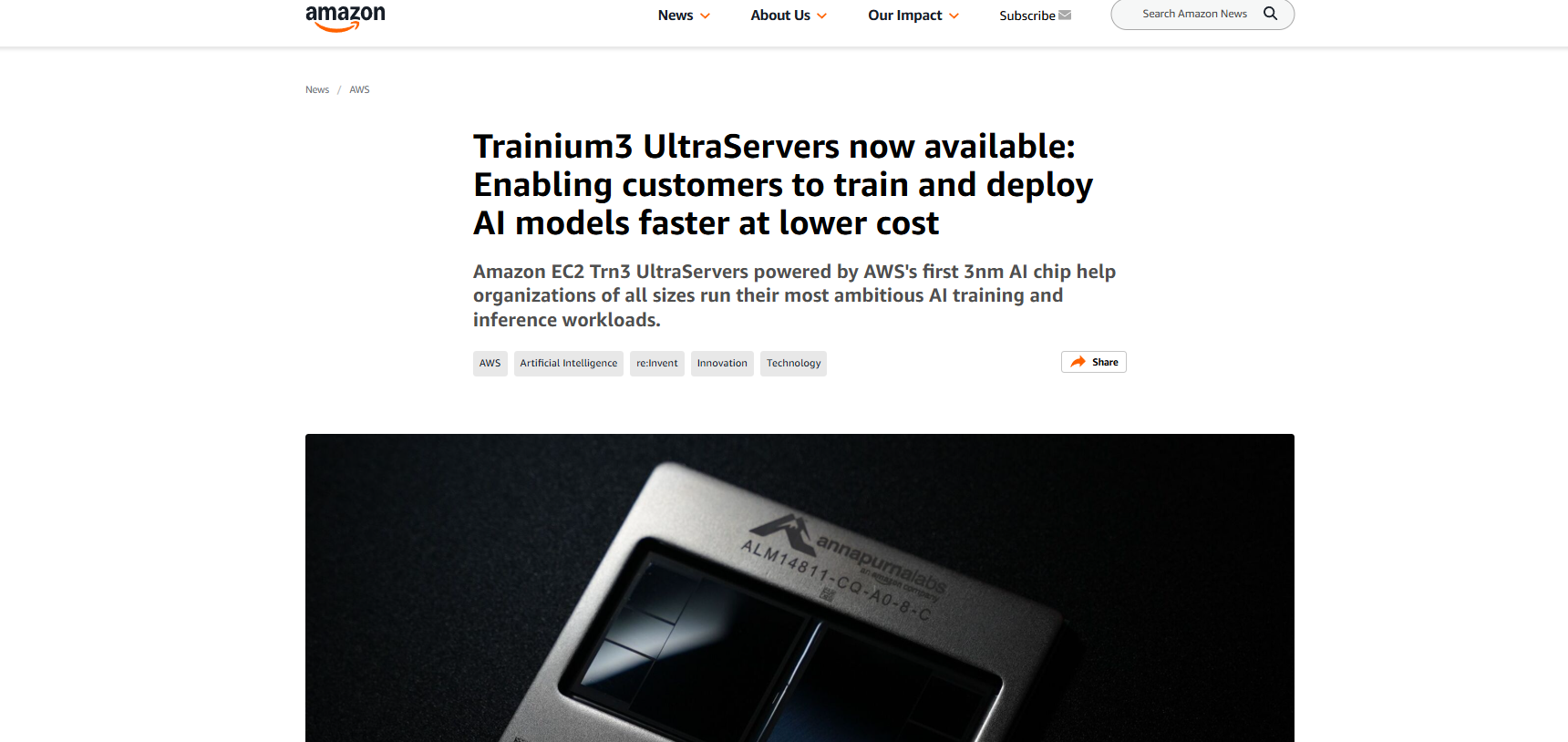 当然,指望亚马逊Trainium3与谷歌TPU一战,甚至“挑战英伟达”的投资者可能会有些失望,毕竟没有任何资料显示这款芯片除了“性价比”之外的其他优势。