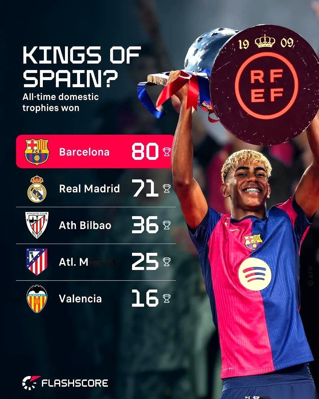有个事儿,我今天才知道,估计能颠覆不少人的认知。 巴萨,西班牙国内冠军数量,居然压着皇马。 80个对71个。 我第一反应是:这数据不对吧? 皇马,欧冠之王,银河战舰,全世界都觉得他们是老大。怎么到了自家地盘上,反而输了一头? 后来我琢磨过味儿来了。 这事儿太有意思了。 这就好比两个人,一个天天在外面闯荡,名声响彻四海,拿的全是国际大奖,是那种聚光灯下的英雄,天生为大场面而生。 另一个人呢,闷头在家里搞建设,把自己的“一亩三分地”经营得风生水起,成了当地首富。虽然在外面名气没那么炸裂,但家底儿厚得吓人。 皇马是前者,欧冠就是它的国际大奖,代表着荣耀和征服。 巴萨是后者,联赛就是它的基本盘,是几十年如一日的稳定输出和统治力。 这俩俱乐部,骨子里的气质就不一样。 一个活成了传奇,一个活成了日子。 所以你说,未来几年这榜单会变吗? 我觉得这不重要。 重要的是,我们怎么去定义“伟大”。是那一瞬间的举世瞩目,还是这漫长岁月的厚积薄发? 这问题,可能比足球本身还有意思。