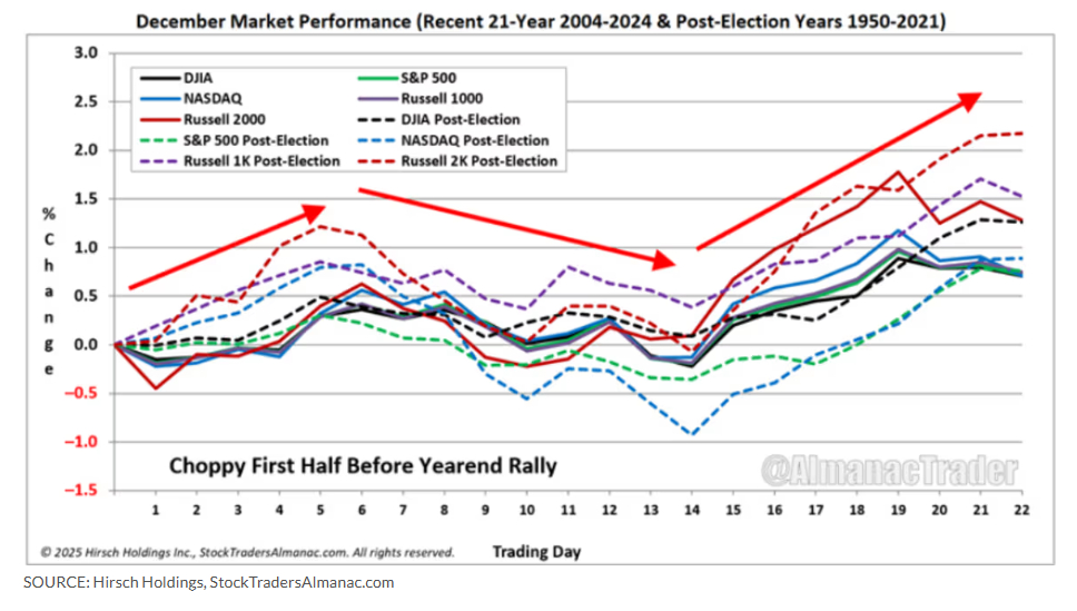 1202市场综述:美股弱势反弹,比特币大涨,分析师不知道这是不是好兆头美股美股 周二,美国股市反弹,华尔街趁比特币和其他高风险资产下跌之际买入。道琼斯工业平均指数上涨185点,涨幅0.4%。标普500指数上涨0.3%。纳斯达克综合指数上涨0.6%。美国国债收益率方面,2年期收益率下降至3.52%,10年期降至4.09%,30年期降至4.74%。尽管标普500指数在过去七个交易日中第六次上涨,但大多数成分股却下跌。苹果公司领涨大型科技股,而特斯拉则下跌。为海外华人提供有价值的信息与分析,更多内容和全文可在蓝天、电报、x查找causmoney,或直接谷歌搜索大空头迈克尔·伯里在一篇Substack文章中表示,特斯拉的股价“荒谬地高估”,并指出在联合创始人马斯克提出的1万亿美元薪酬方案之后,股东持股被稀释的情况将会持续。波音公司股价大涨10%,公司预计将在2026年重新实现现金流转正。亚马逊云计算部门正加速推出其最新版本的人工智能芯片,重新发力硬件市场,力图与英伟达和谷歌的产品竞争。云计算服务商Vultr正在俄亥俄州一个数据中心部署一套50兆瓦规模的超威半导体人工智能处理器集群,目标是在降低成本的同时提供AI基础设施服务。数据库软件公司MongoDB公布的财报好于预期,并上调全年业绩指引。凯雷集团出售了不到三年前提供给iRobot的一笔问题贷款。目前Roomba扫地机器人制造商正试图避免申请破产保护。加拿大丰业银行凭借资本市场部门优于预期的表现,实现盈利超预期,并预计明年其核心加拿大银行业务的增长将加快。加拿大洛朗银行将成为最新退出市场的小型银行,已达成协议,以19亿加元(约合14亿美元)的价格将自身出售给Fairstone银行,同时剥离零售银行业务,专注于商业贷款。丹麦制药商诺和诺德计划在儿童群体中启动一项关于下一代减肥注射药物CagriSema的大型研究,这表明尽管此前的试验结果不理想,公司仍将推进药物的开发。淡水河谷和嘉能可正考虑在加拿大开展一个联合铜矿项目,两家公司正寻求扩大在全球电气化进程中被视为短缺金属的铜资源布局。三星电子发布首款“三折”智能手机,展现其在折迭设备领域的工程实力,尽管这一类产品尚未获得主流消费者广泛接受。台湾检方对东京威力科创公司提起指控,原因是该公司未能防止员工涉嫌窃取台积电商业机密。这一案件加剧了涉及亚洲两大关键芯片厂商的争议,而芯片行业正日益成为国家与经济安全的核心领域。比特币当日大幅反弹,重新站上9万美元关口。此前,随着投资者降低风险敞口,加密货币板块大幅下跌。专注于收购数字代币的公司,如迈克尔·塞勒旗下的Strategy公司,周二早盘股价上涨。美国比特币( American Bitcoin)公司的股价依然表现不佳。这是一家比特币挖矿和比特币资产管理公司,由特朗普的儿子埃里克·特朗普和小特朗普支持。这只股票周二早些时候一度下跌多达51%,之后有所回升,但仍下跌约40%,有望创下自9月通过反向并购上市以来的最低收盘价。美国比特币公司联合创始人埃里克·特朗普表示,股价剧烈波动的原因在于此前受限的股份解禁。他在社交媒体上发文称,周二解禁的“并购前私募股份”首次允许投资者出售持股并套现。美股的食品公司股价周二下跌,旧金山市检察官对多家美国大型食品制造商提起诉讼,指控公司明知产品有害却仍进行生产和营销。这起诉讼由旧金山高等法院受理,涉及从卡夫亨氏到通用磨坊在内的11家大型食品企业。诉状称,这些公司通过“欺骗性和不公平行为”违反了加州的不正当竞争法和公共危害法。经济和贸易方面,日本国债继续受到市场关注。此前日本央行行长发表鹰派言论,30年期国债收益率盘中创下历史新高。不过,在债券成功拍卖之后,基准借贷成本当天收盘有所回落。收益率上涨可能会削弱日本对美国国债的需求,并扰乱套息交易结构。套息交易中,投资者以低成本借入日元,再加杠杆投资其他高收益资产。美国确认将对韩国汽车的关税从25%下调至15%,并追溯至11月初生效后,首尔股市上涨。起亚和现代汽车股价双双上涨超4%。经济合作与发展组织周二表示,随着更高关税开始生效,美国和全球经济预计将在明年放缓。特朗普表示他计划在2026年初宣布下一任美联储主席人选。 交易者预计联邦公开市场委员会在12月10日有89.2%的概率将降息25个基点。但克林斯基指出,这未必会对长期利率产生帮助,因为过去五次美联储降息后,10年期国债收益率反而上升。分析方面,12月的交易在华尔街一直带有节日气氛:市场情绪更为乐观,交易量偏低,买盘倾向使得股市往往在年底缓慢上扬。但《股票交易年鉴》的分析师指出,从历史来看,每年12月上旬通常较为波动,原因是投资者开始进行税务亏损抛售以及年终投资组合调整。分析师在周一发给客户的报告中写道:“12月前六个交易日左右通常会有一波小幅反弹,但到了月中,这波涨势往往会消退。此后,节日氛围逐渐增强,税务抛售的压力一般也会减轻,从而推动股指走高,直到月底附近再出现短暂停滞。”在标普500指数中,科技股、与加密货币相关的公司,以及趋势动量股成为主力。MongoDB和Credo Technology公布的财报也为本周财报季开了个好头。标普500全天波动剧烈,多次上攻6840点后失去动能。技术分析公司CappThesis创始人弗兰克·卡佩莱里表示:“这一点位正是标普500指数合理的停顿位置。该指数