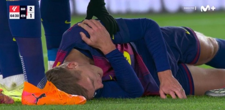直播吧12月03日讯巴萨3-1逆转马竞,奥尔莫进球后伤退。据世体报道,奥尔莫肩膀脱臼,预计伤缺至明年1月。