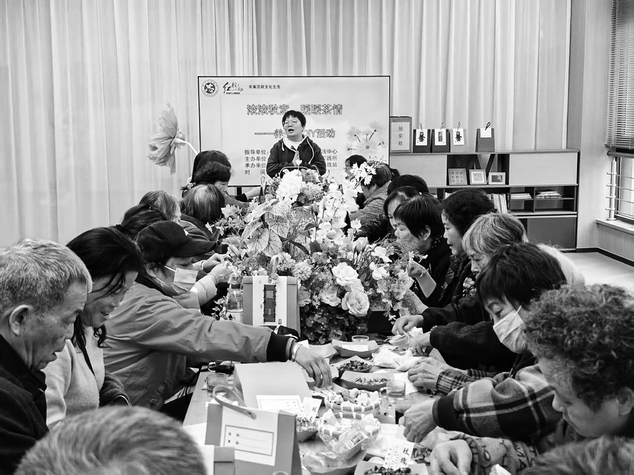 随后,居民小组长们拿着小勺子认真挑选食材,小心翼翼地搭配封装,把心意藏进一个个茶包。茶包经热水冲泡后,干花在杯中缓缓舒展,一缕缕清香扑鼻而来。大家围坐在一起品茶畅谈,交流社区建设想法,在欢声笑语中拉近了邻里距离。