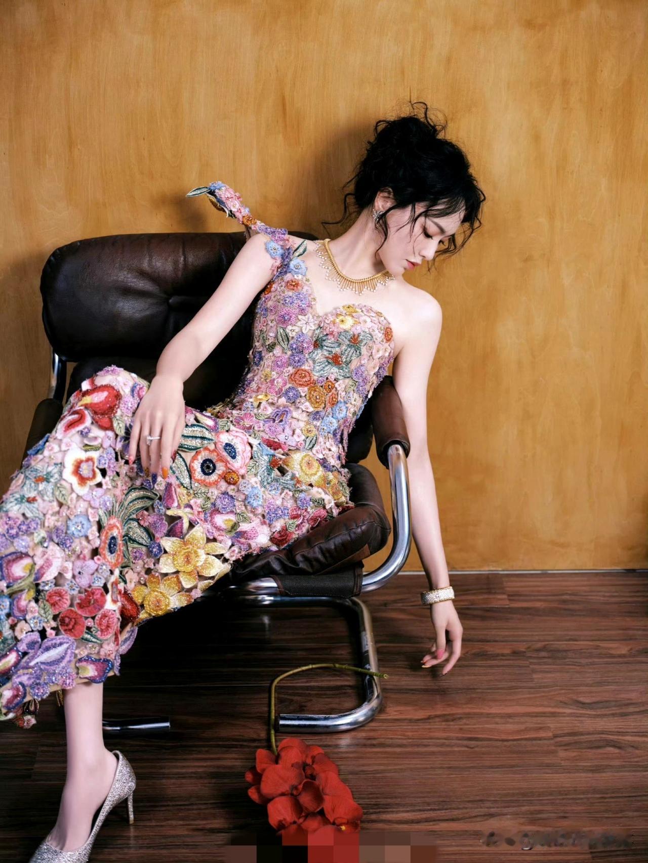 唐嫣的“花神裙”:把高定绣成春天 唐嫣穿Rahul Mishra 2025高定赴宴,裙身是手工堆出的3D花簇,刺绣裹满碎钻像把花园缝在了布料上。单肩的花叶装饰斜坠肩头,配金色颈链,甜媚里裹着艺术感。 乱卷发衬得裙身更鲜活——这哪是礼服,是把“花神下凡”穿成了具象的浪漫。