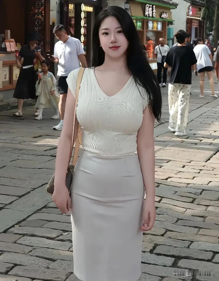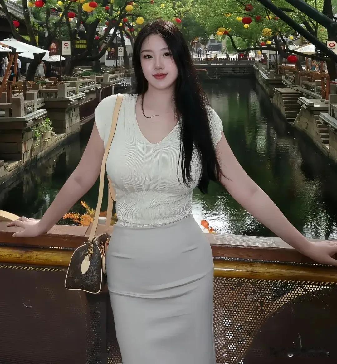 优雅坐于石凳,浅浅微笑,手提包相伴,静享时光。
