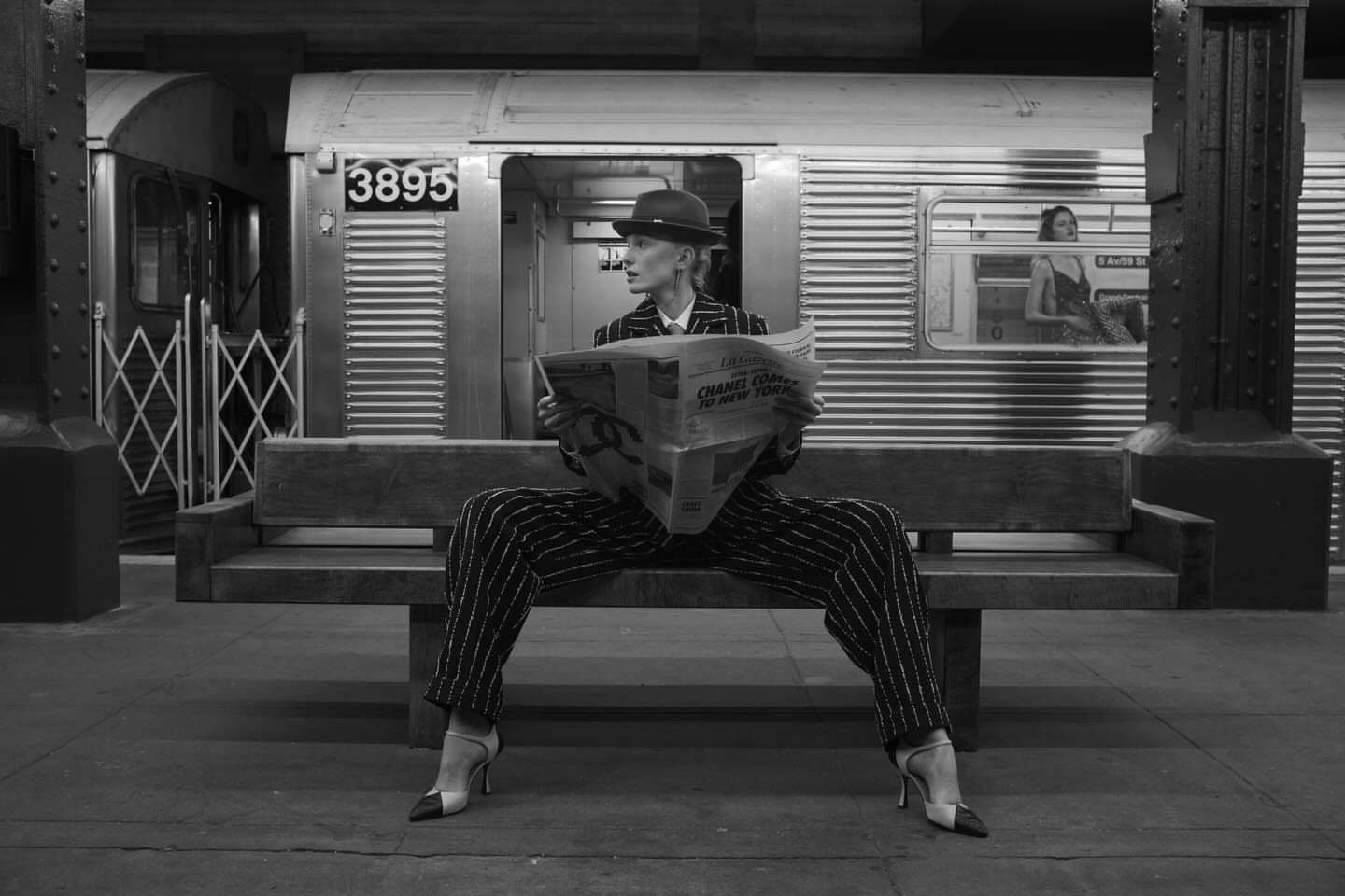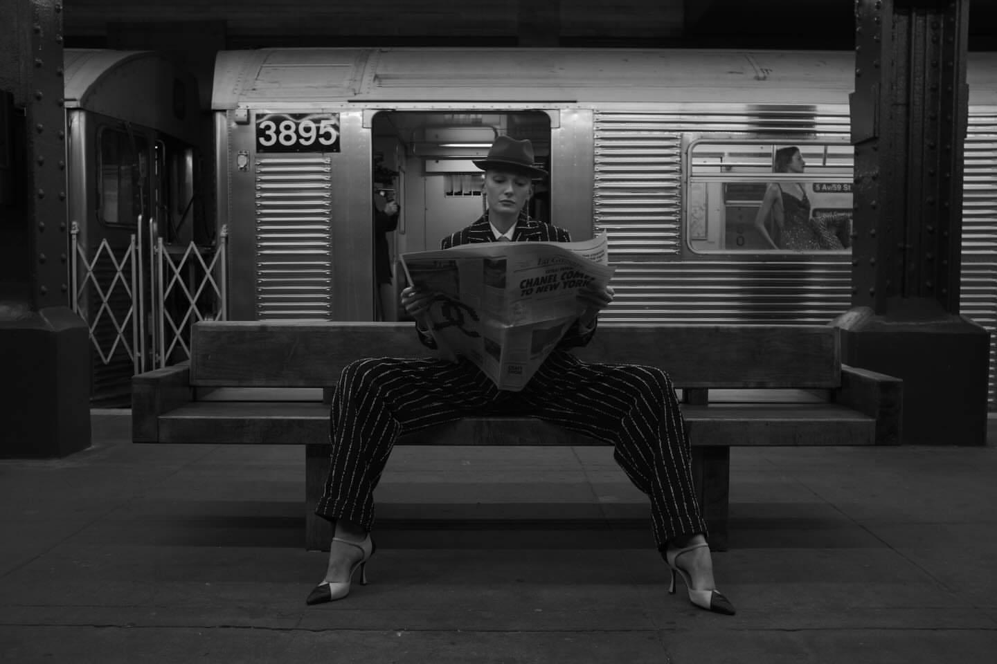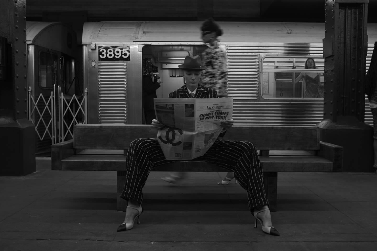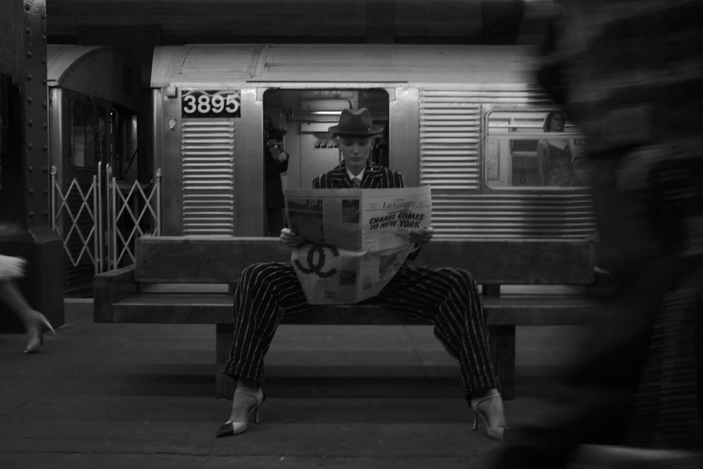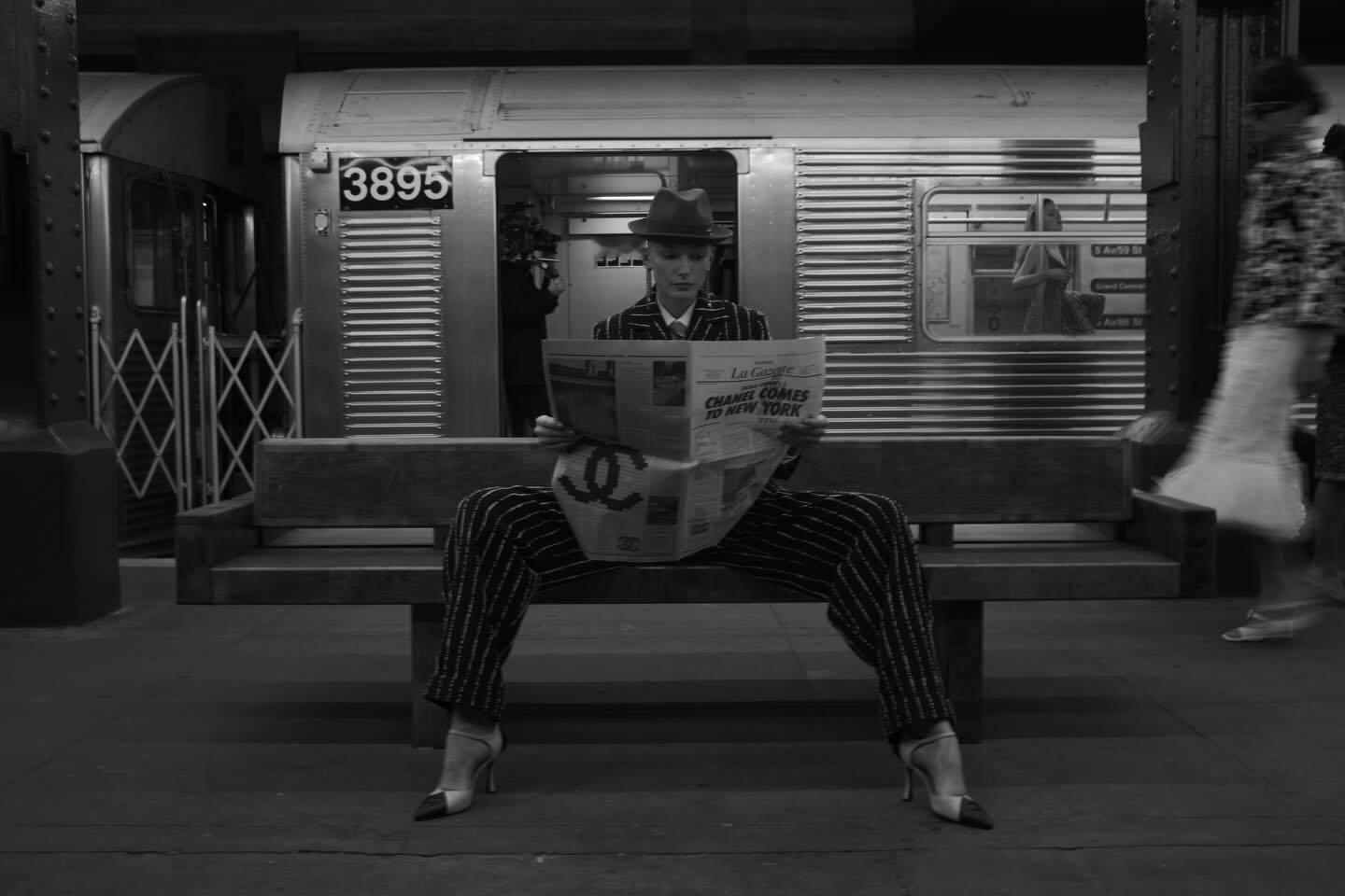 CHANEL 2026高级手工坊系列秀场一瞬,王一博镜头下身穿条纹西装的酷女郎