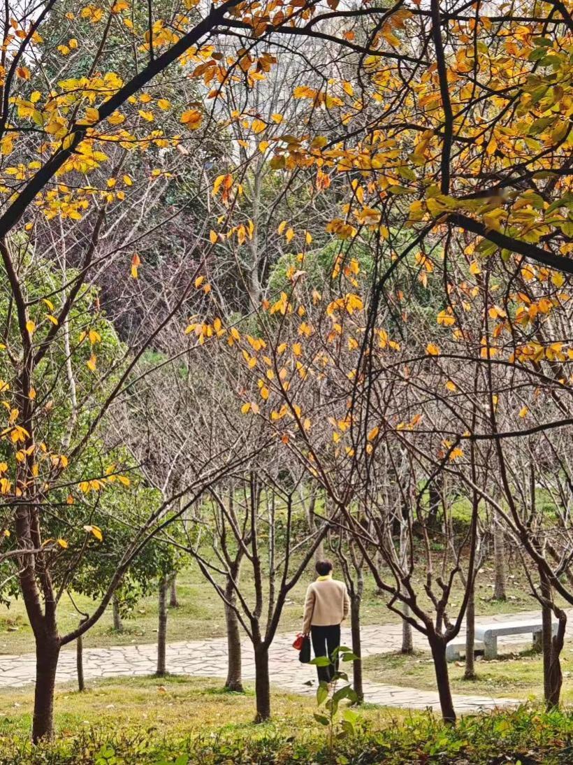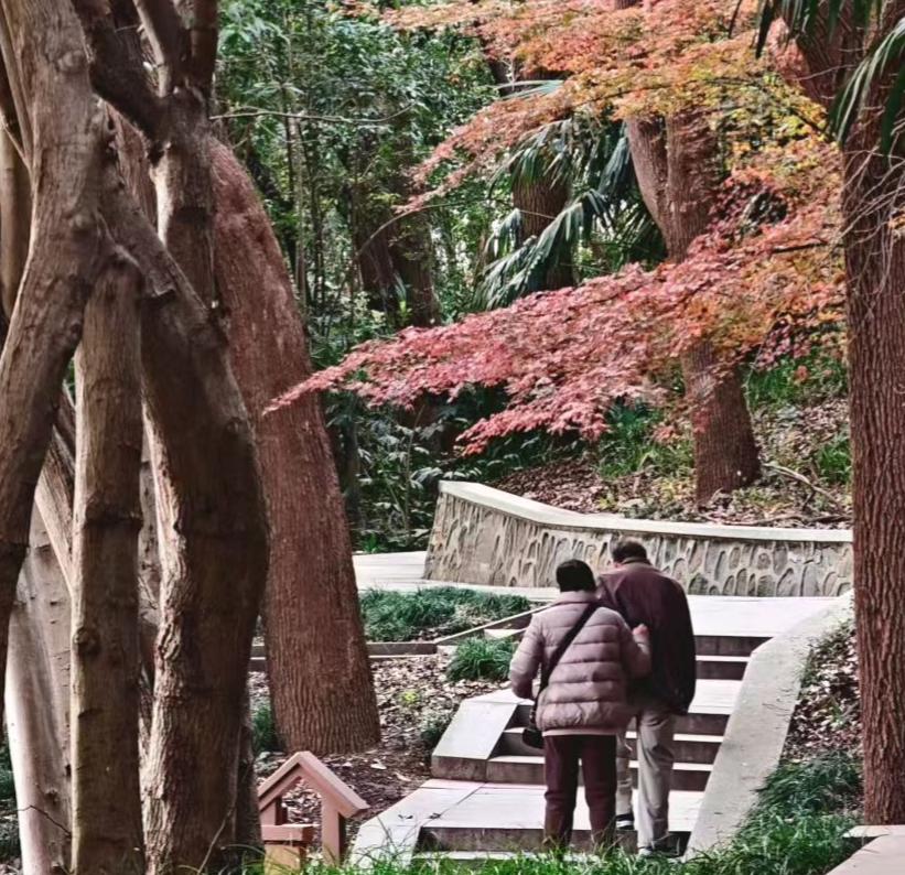山色斑斓已是秋, 姥叟搀扶登山游。 当年也曾参天树, 虽入暮年志不休。