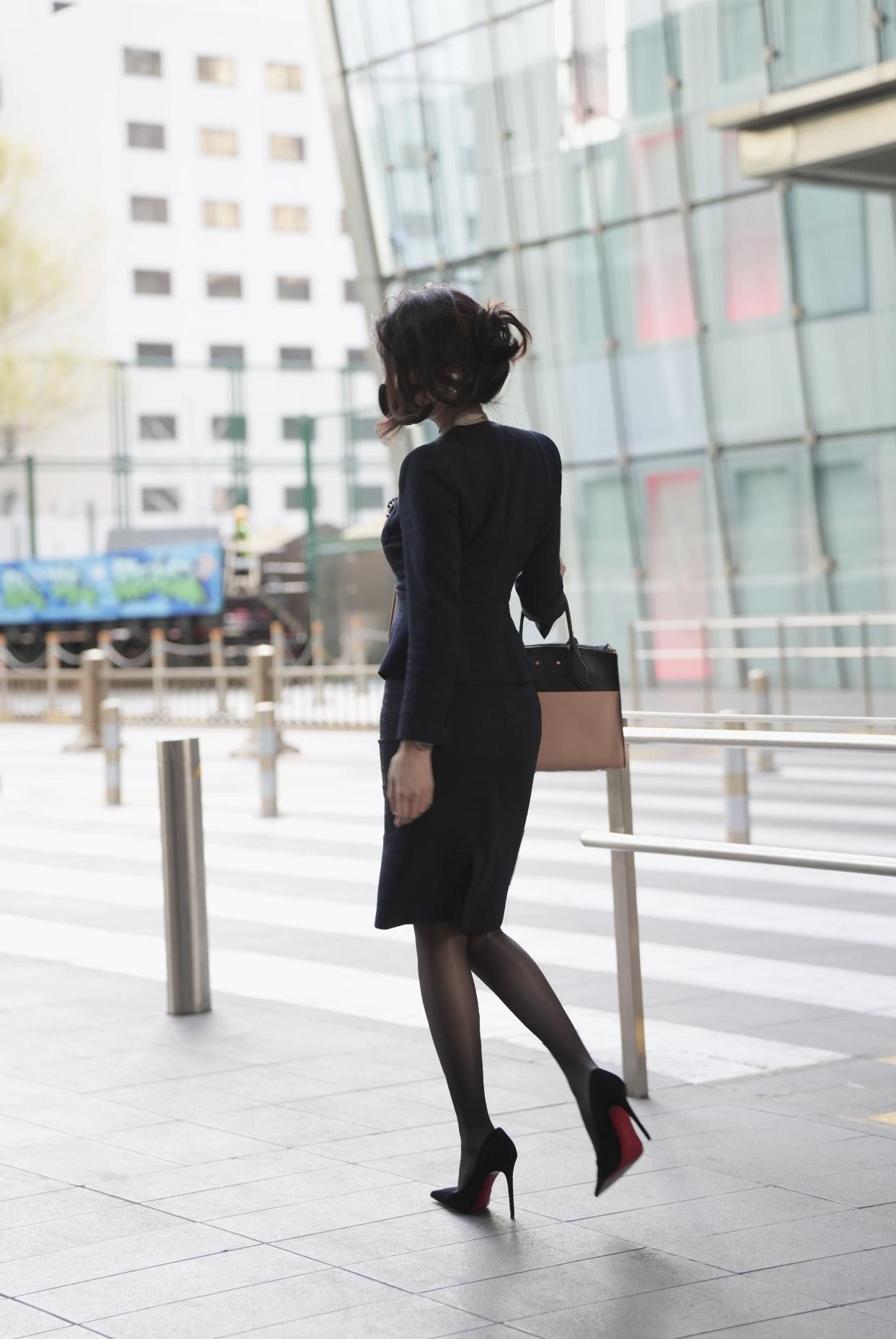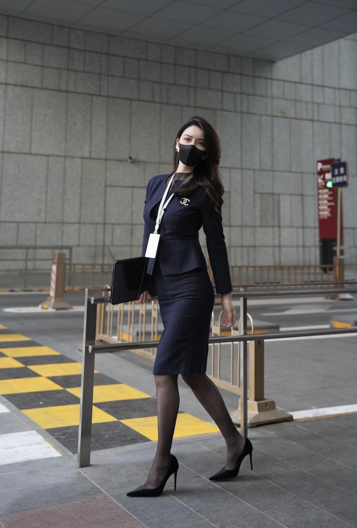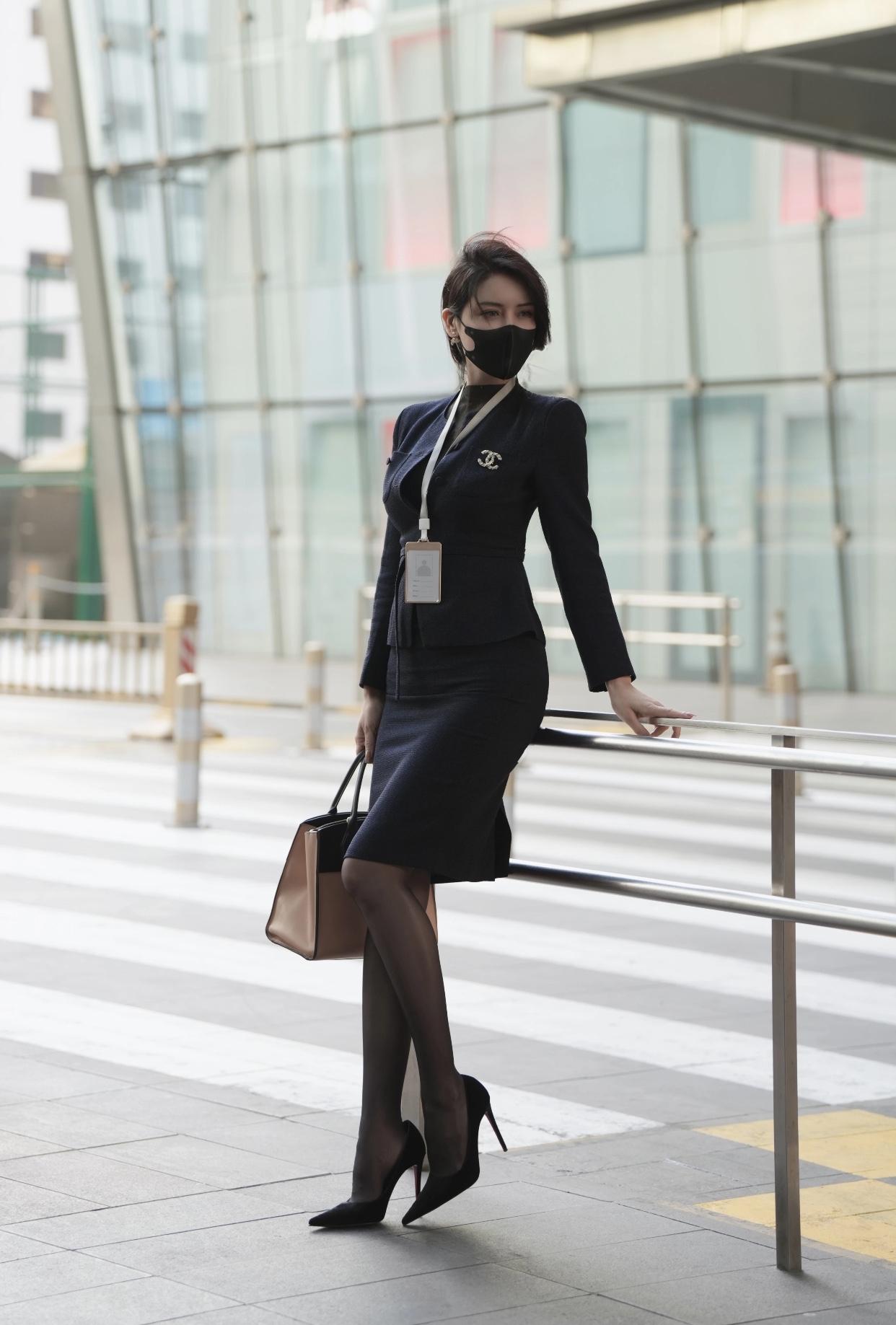 优雅职场风,黑色套装搭配米色手袋,尽显时尚魅力
