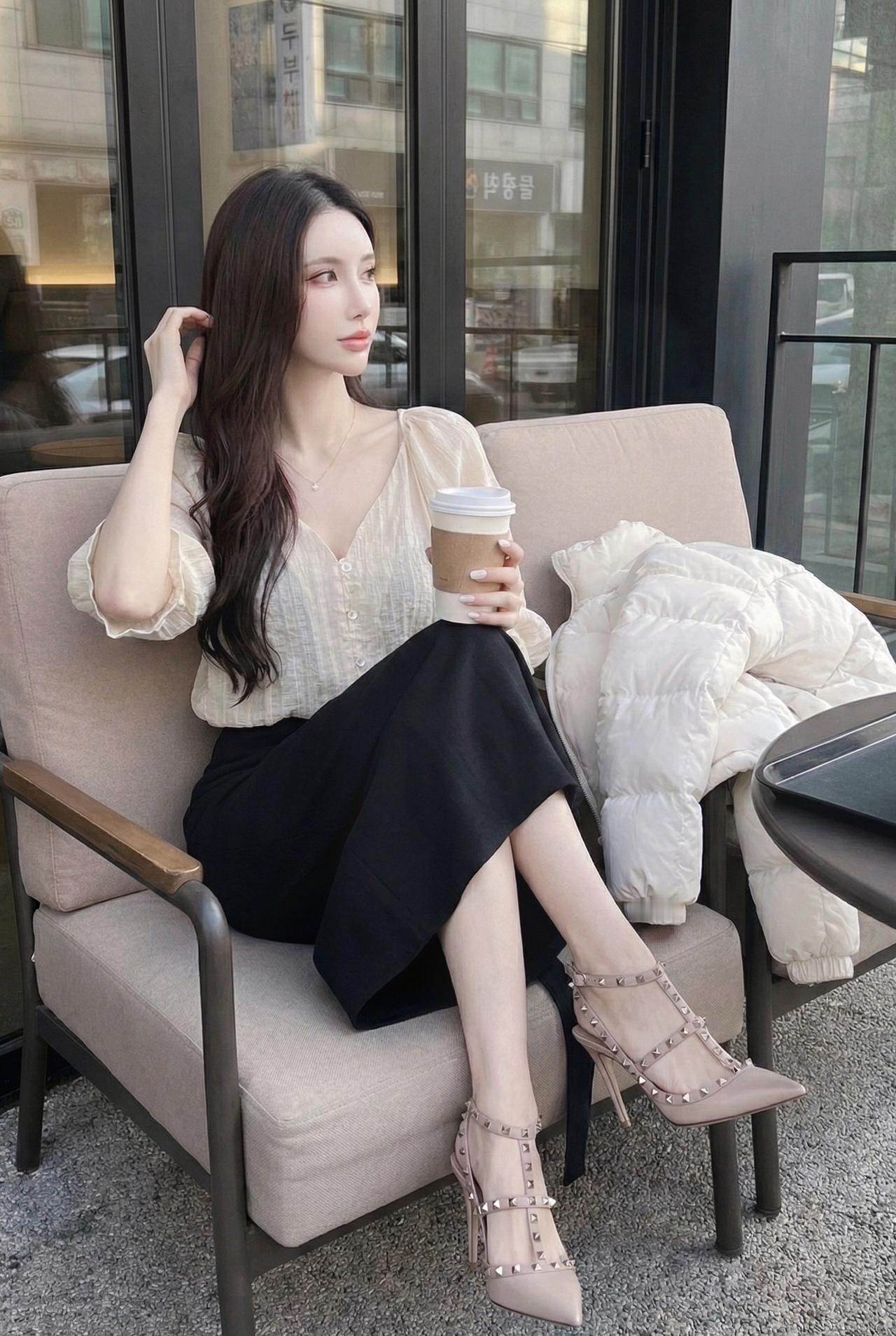 优雅白衬衫+黑色长裙,夏日清新穿搭,尽显都市女性魅力!🌸👗👠