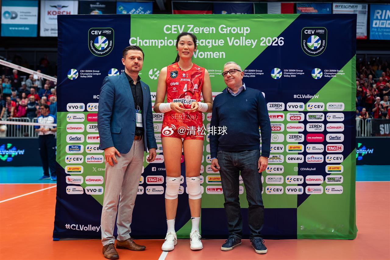 【朱婷16MVP 科内横扫德累斯顿夺欧冠两连胜】2025-2026欧洲女排冠军联赛小组赛D组第二轮,意大利科内利亚诺女排3-0(25-12 25-17 25-17)横扫德国德累斯顿女排,科内获得两连胜,主攻朱婷16分(21扣12中1失误0被拦、4拦,16次一传0失误、到位率25%)获得本场MVP,德累斯顿接应恩提乌斯7分(9扣7中0失误1被拦)。清松带你看排球2025-2026欧洲女排冠军联赛